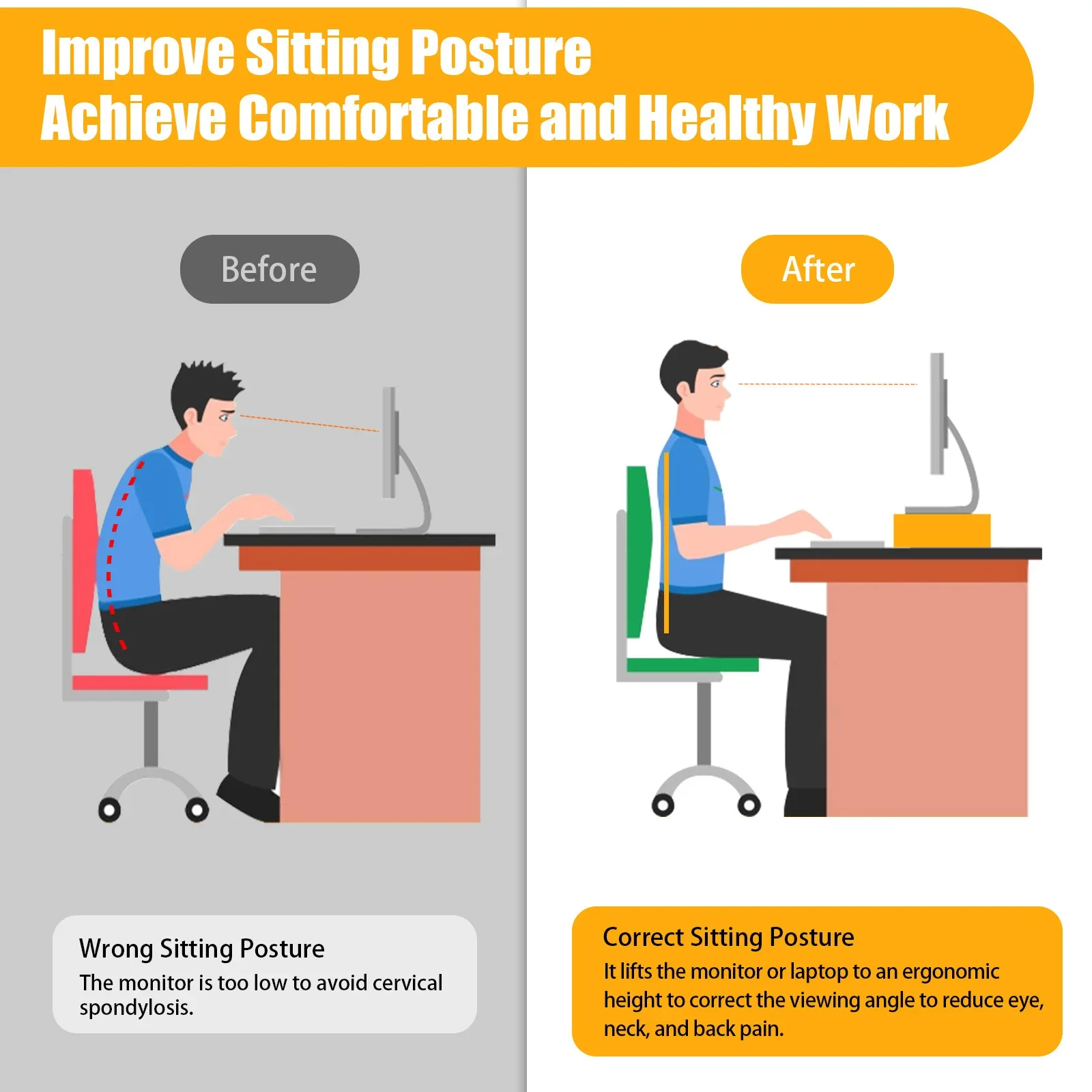 Easy to use: You can elevate the monitor or laptop to an ergonomic height, correct the viewing angle to 90 degrees, and alleviate eye, neck, and back pain. It is an essential desktop accessory for both home and office use.
