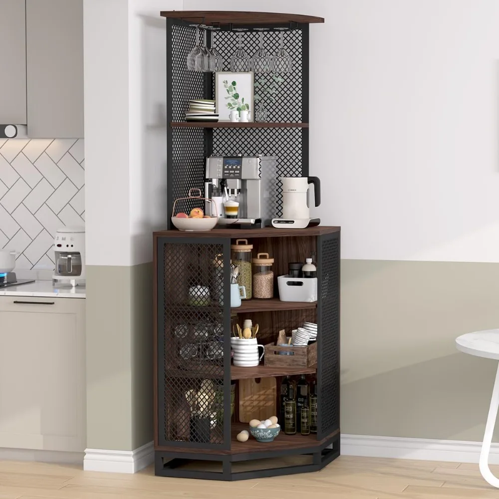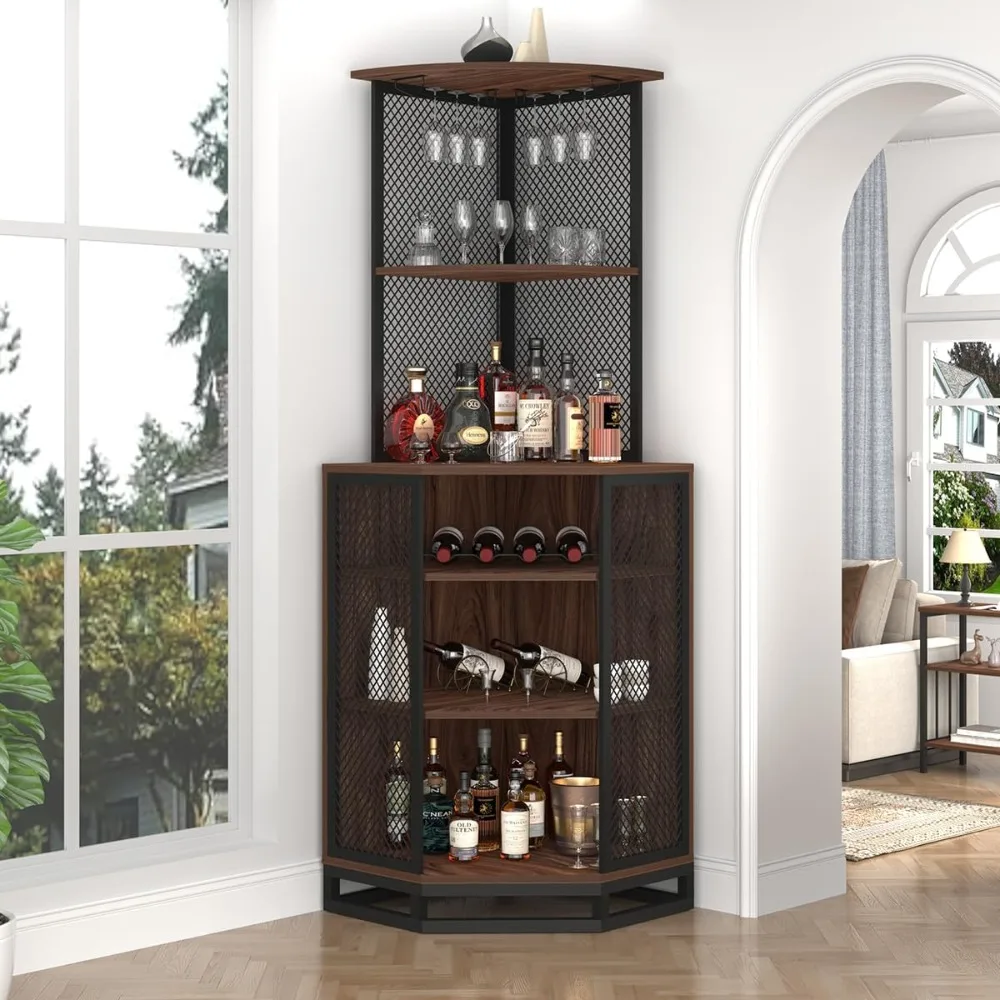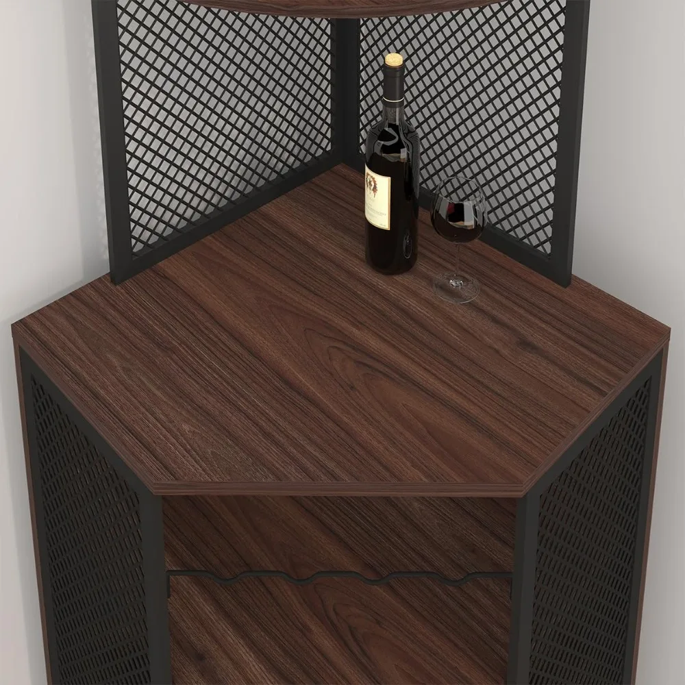 - Space Optimization: This walnut brown corner bar cabinet is the perfect solution for addressing limited small space concerns. Its unique design maximizes the use of room corners, creating valuable additional storage while offering outstanding decorative appeal.