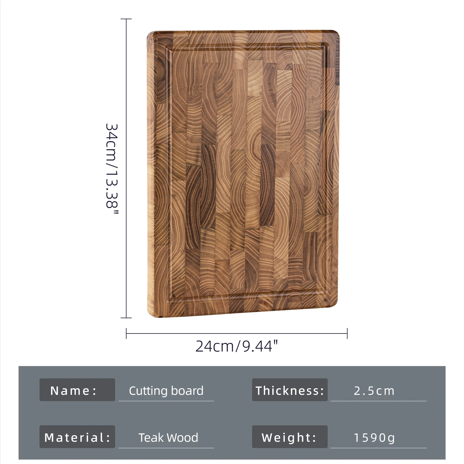 • Teak Wood Material :Crafted from high-quality teak wood, this chopping board offers durability and longevity. Its natural texture provides a unique touch to your kitchen prep.
