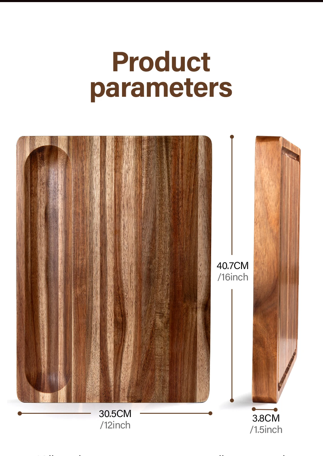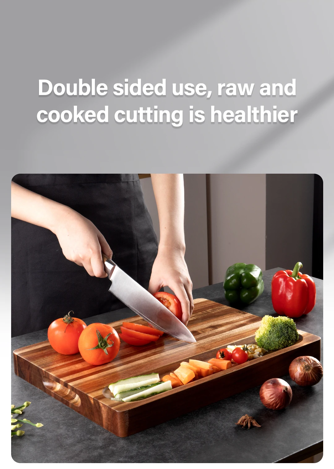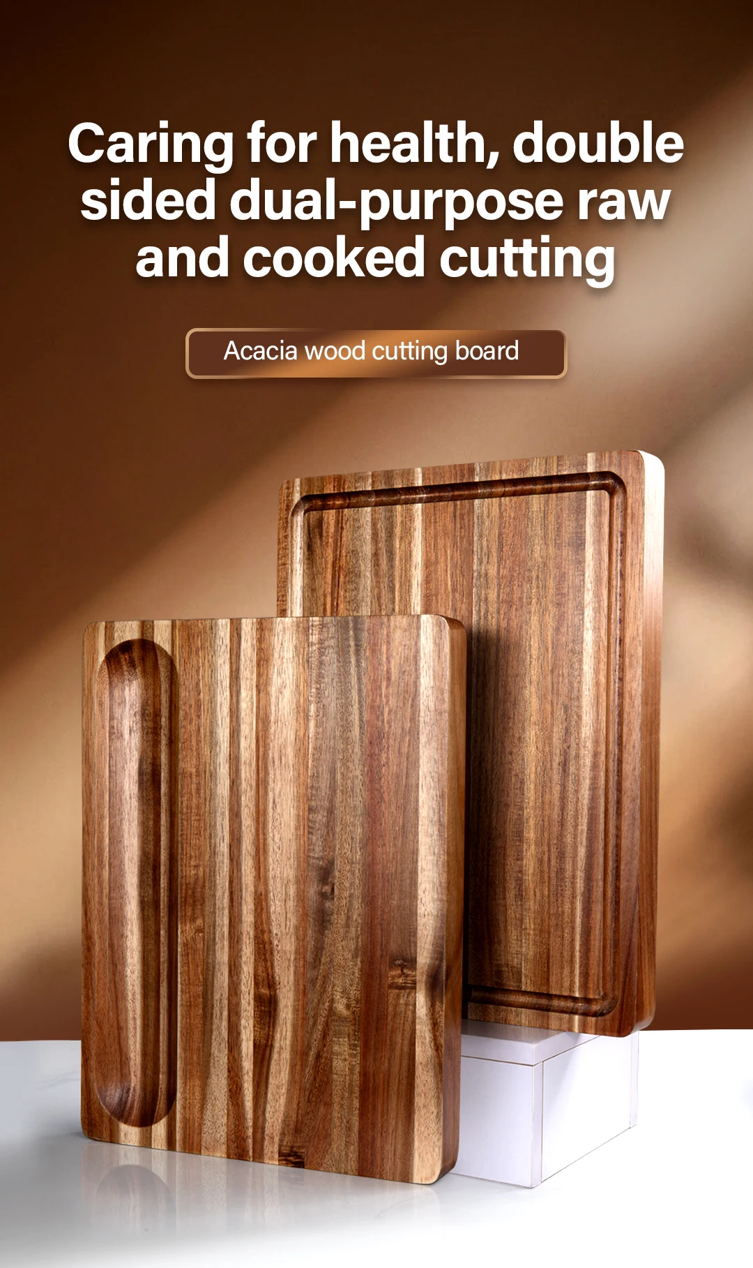 Thick Acacia Wood Cutting Board Double-sided Using Large Solid Wooden Chopping Block With Juice Groove Food-Safe Kitchen Tools