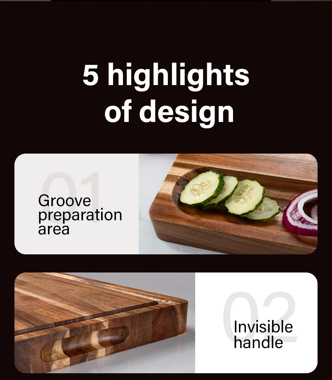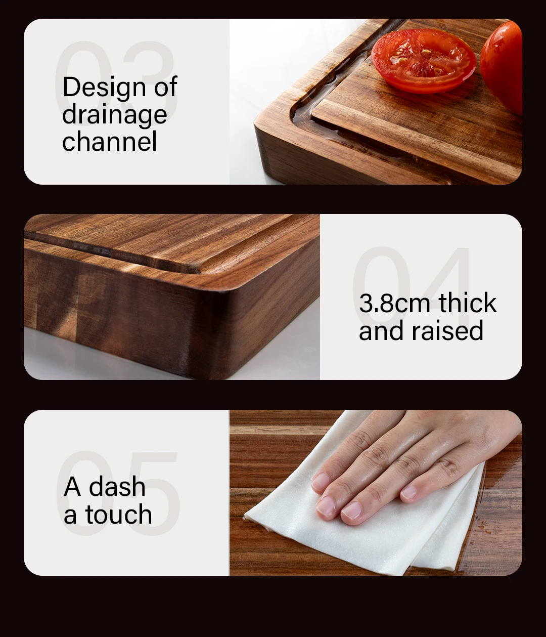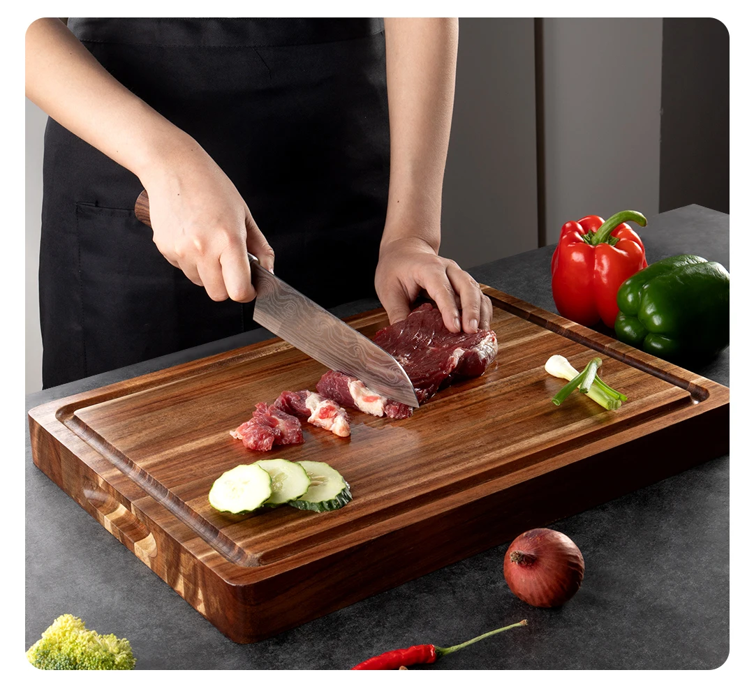 Thick Acacia Wood Cutting Board Double-sided Using Large Solid Wooden Chopping Block With Juice Groove Food-Safe Kitchen Tools