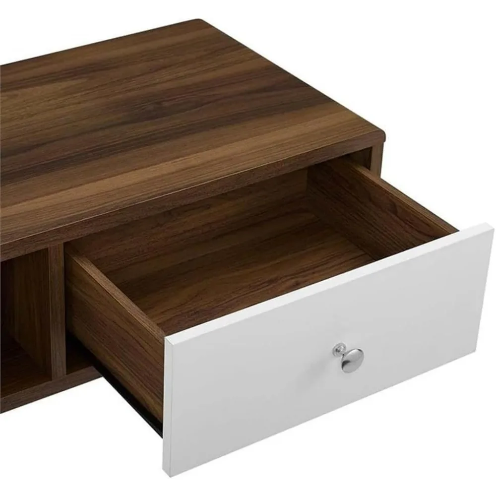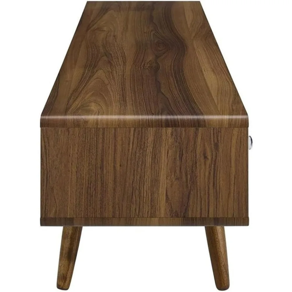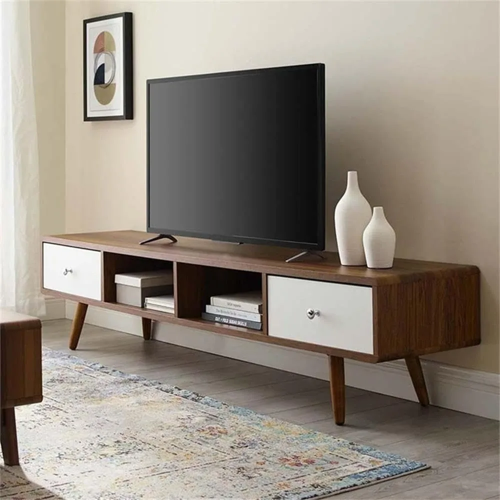• SUPERIOR CONSTRUCTION - Sitting atop tapered legs, this retro media stand features a particleboard frame with walnut grain laminate, and white lacquered full-extension glide drawers for extra storage