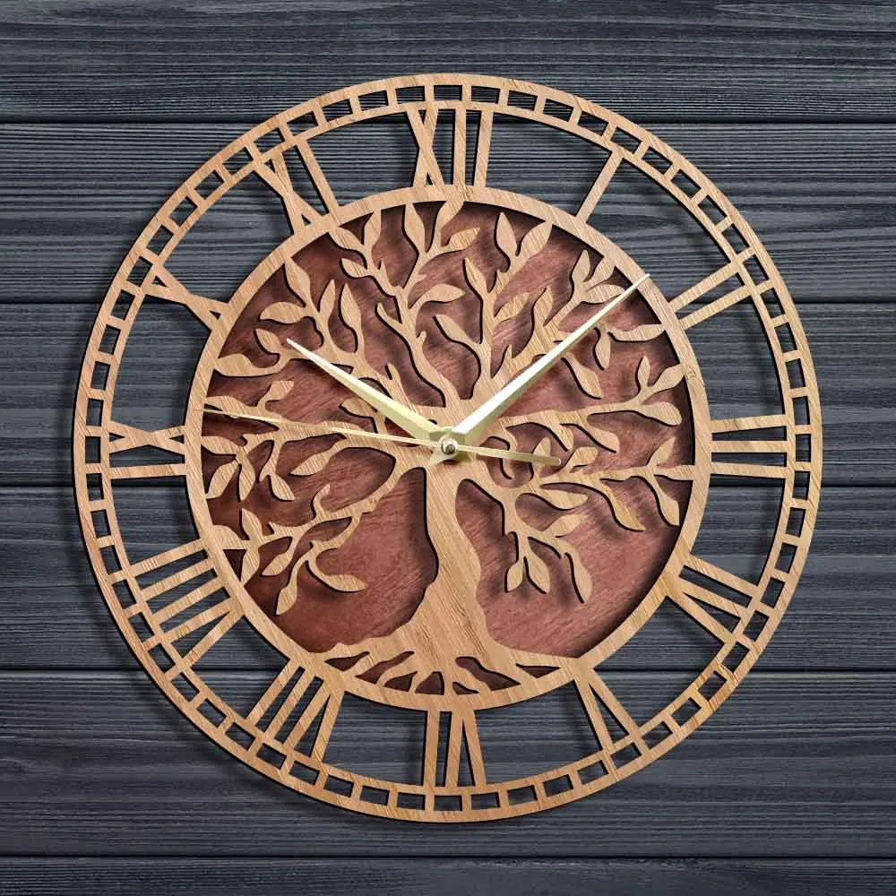 Tree of Life Wooden Wall Clock Farmhouse Style Family Tree Art Silent Clock Home Decor Laser Cut Wall Watch Housewarming Gift