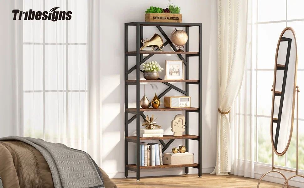 [Modern & Industrial Style]: Tribesigns bookshelf is constructed by retro styled rustic brown board and unique matte black iron finished metal frame, creating a classic beauty and warm atmosphere. Geometric simple structure makes it a fit with any decor need. Perfect furnishing addition for your home office.