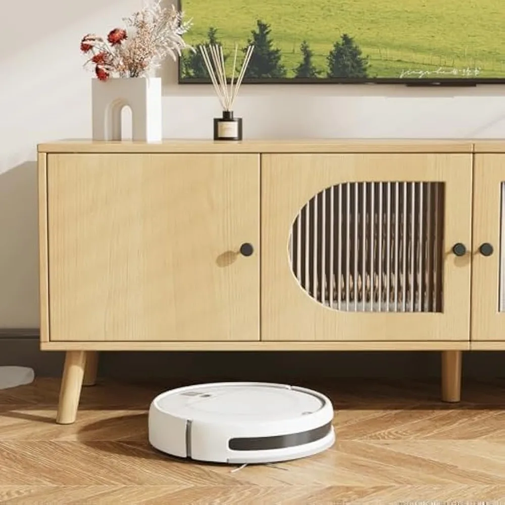 - 【Sturdy Structure】This TV control center is made of high-quality particle board, which is sturdy, durable and easy to clean. 5 solid wood support feet ensure that the entire TV cabinet is stable, while evenly distributing the load and not easy to deform. The height of 5.5 inches from the ground allows the sweeping robot to pass easily.