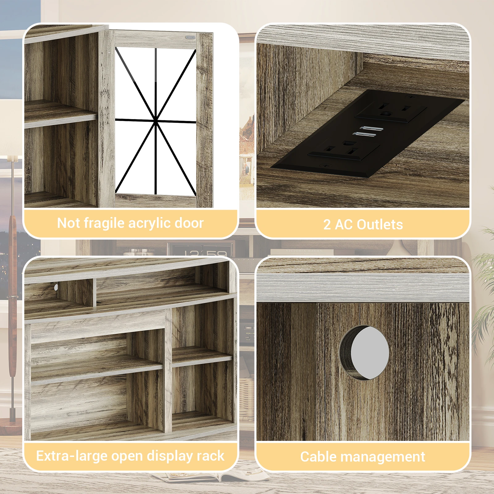 This TV entertainment stand perfectly combines modern, and rustic farmhouse style, a great way to add personality and charm to your living room. The interior adjustable shelves and 2 cable management holes behind the door help the easy organization and hiding wires. Built-in LED lights offer 16 colors and 4 color flashing modes, perfect for creating a vibrant atmosphere while watching movies or gaming.
