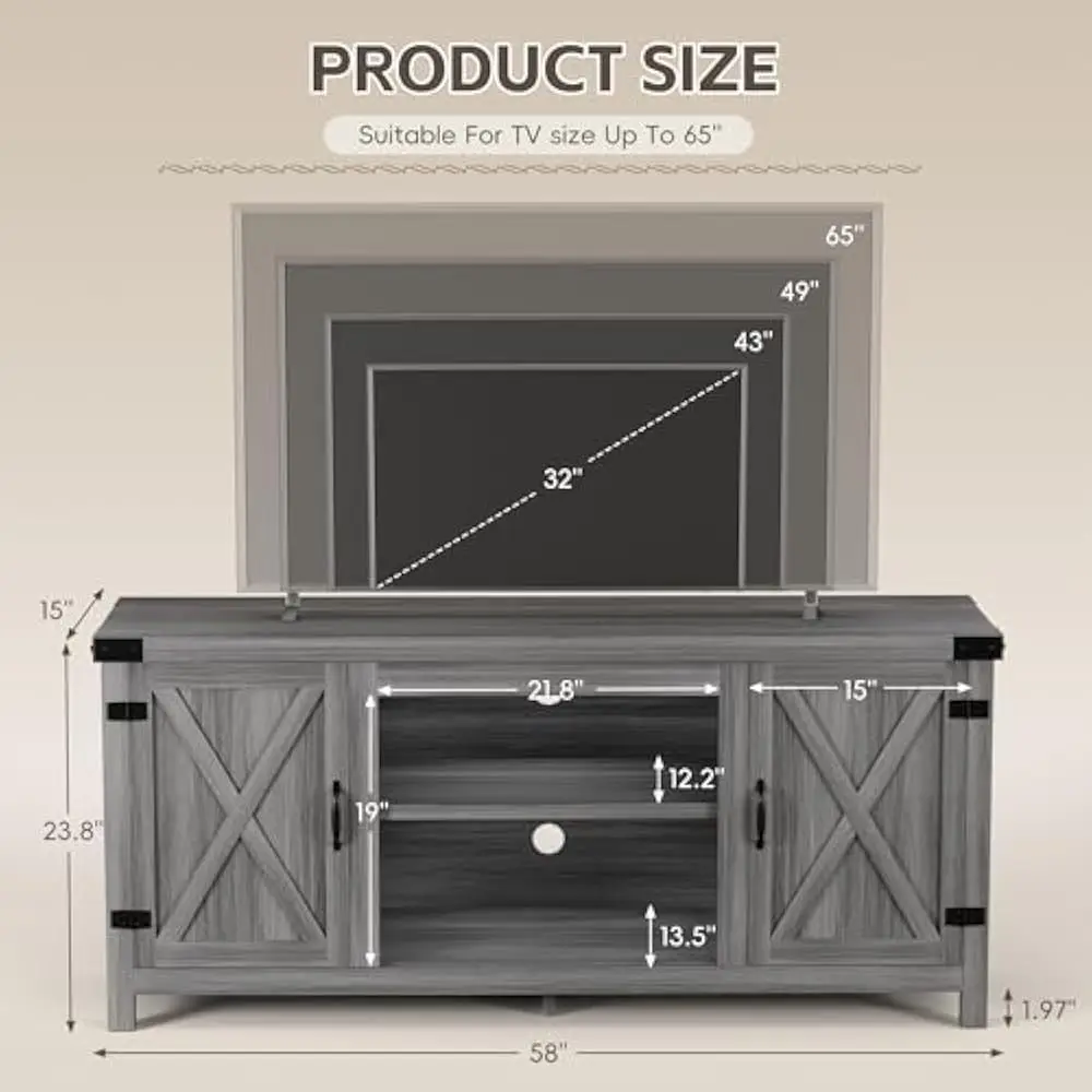 • TV Stand Size: The size of this TV stand is 24” H x 15.75” D x 58” L, and can hold up to 65+ inches of TV sets.