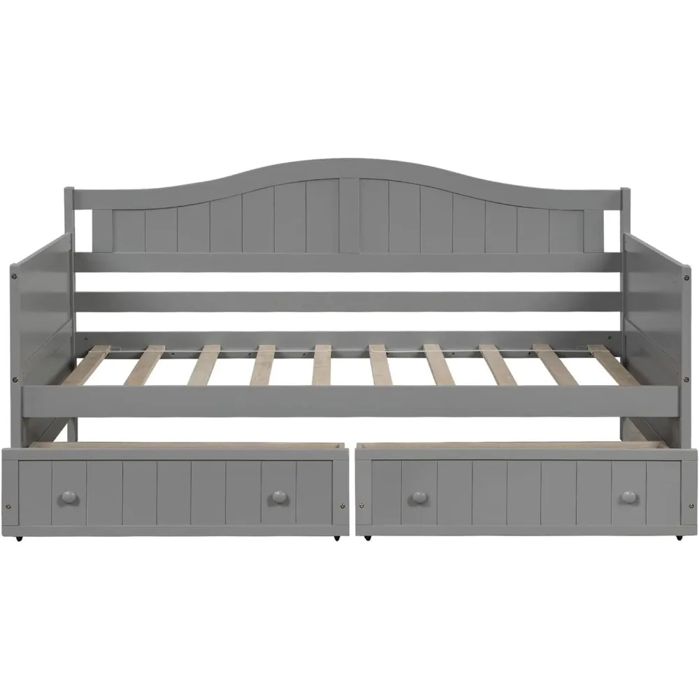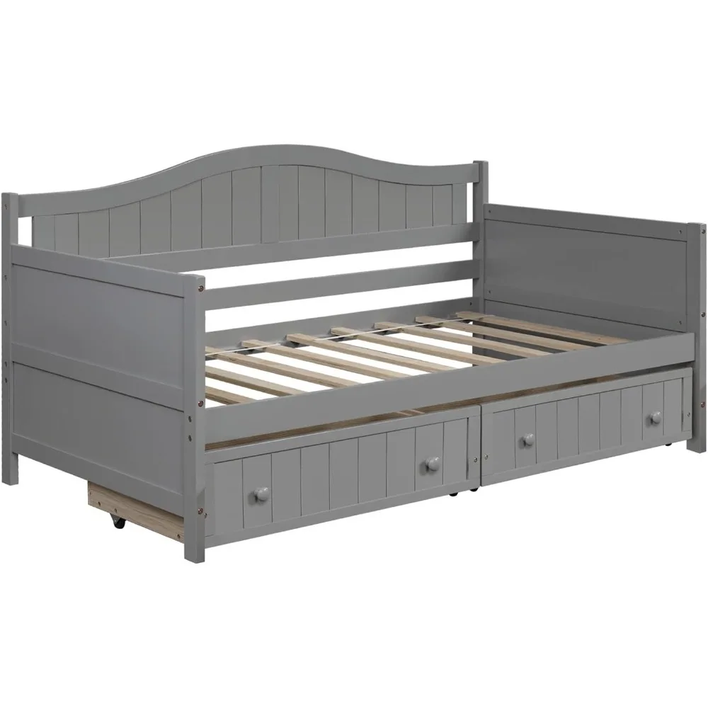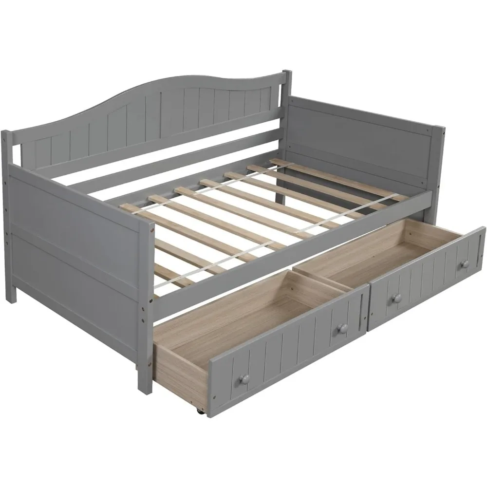 - 【Sturdy Construction Bed Frame】: This twin daybed with drawers made of solid pine wood and built to lasting enjoyment for years to come. Solid Pine with square posts make the daybed extremely sturdy and rugged. Pine wood frame adds sturdiness and durableness.The strong legs and wide boards can not only improve the weight capacity but also increase its stability.