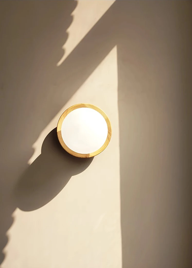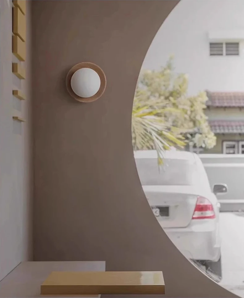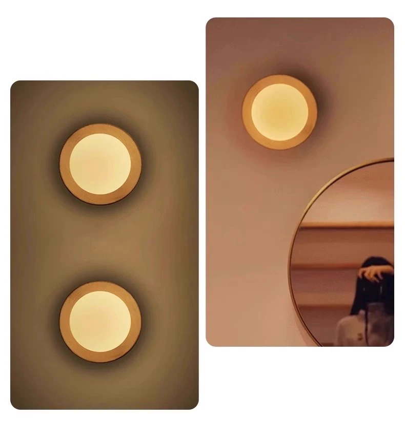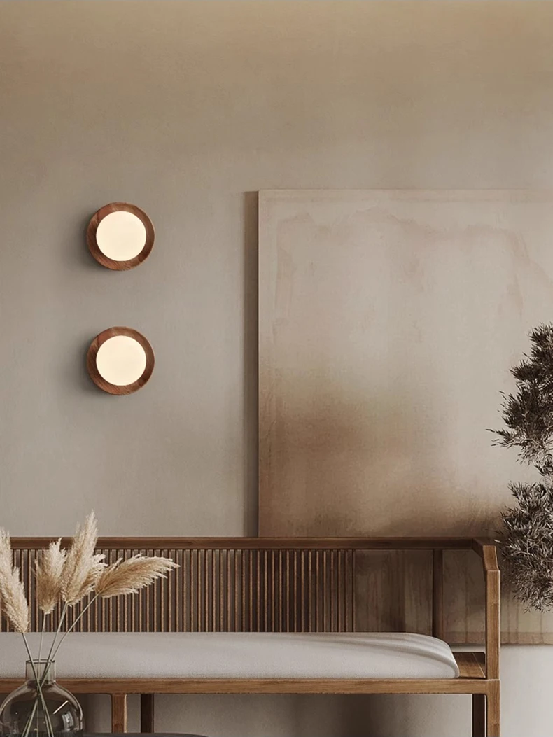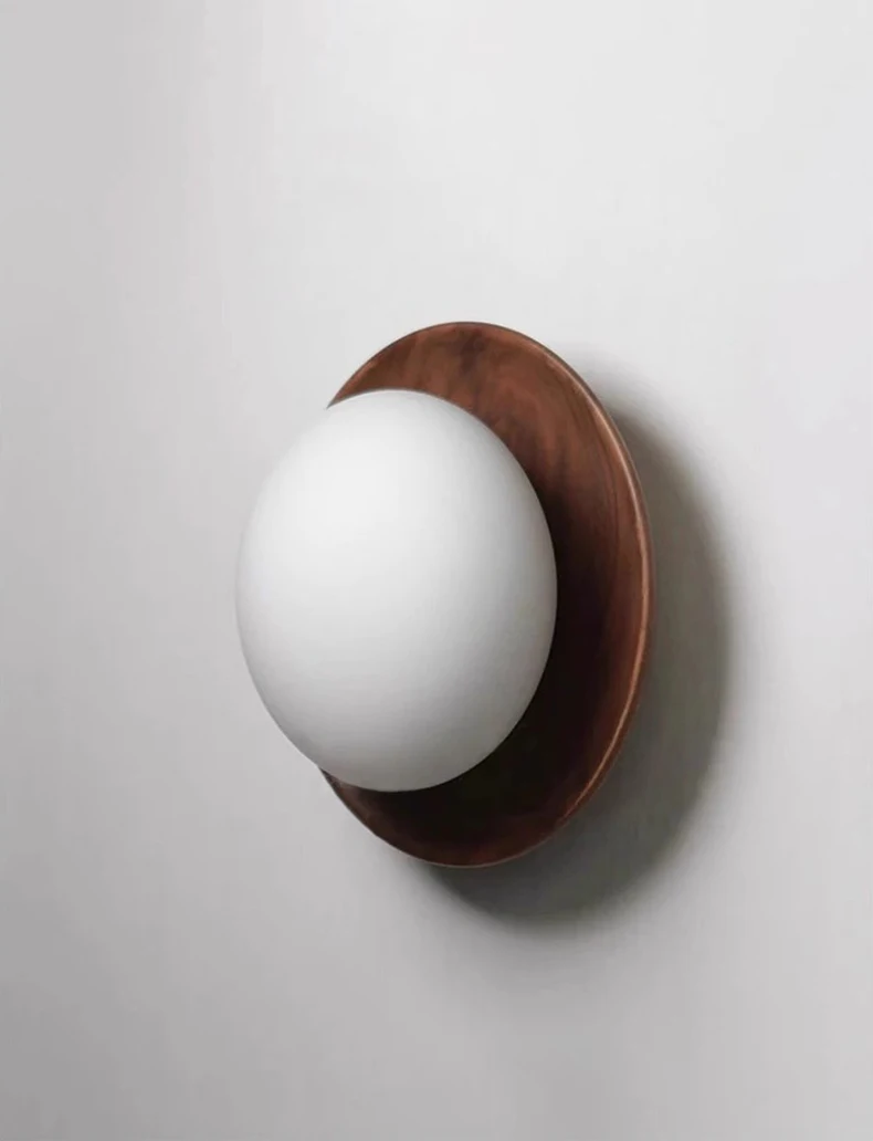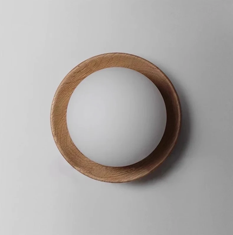 Wabi-sabi Style Nature Wood Walnut Color Bedroom Bedside Wall Lights Milky White Round Glass Wall Lamp for Hallway Stair Aisle