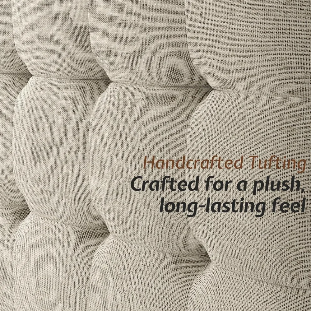 This mid-century solid wood bed boasts a traditional design with clean, simple lines, bringing a fresh and natural aesthetic to your bedroom. It creates a timeless space where comfort and elegance come together. The king bed frame features a 50-inch tall upholstered headboard, tufted for ultimate comfort, making it perfect for relaxing or reading in bed. Crafted from durable solid rubber wood, this platform bed frame showcases the natural wood grain and provides long-lasting support. There's no need for a box spring with this bed frame, as it offers full mattress support with solid slats, resulting in a sleek, low-maintenance setup that saves both space and time. Assembly is a breeze, with clear instructions allowing two people to assemble the bed frame in just one hour, ensuring a quick and stress-free setup.