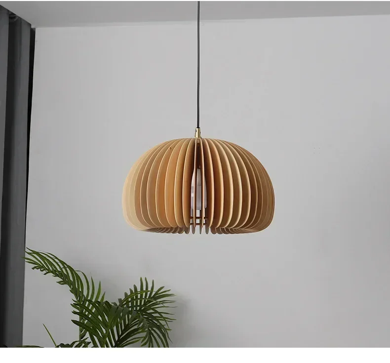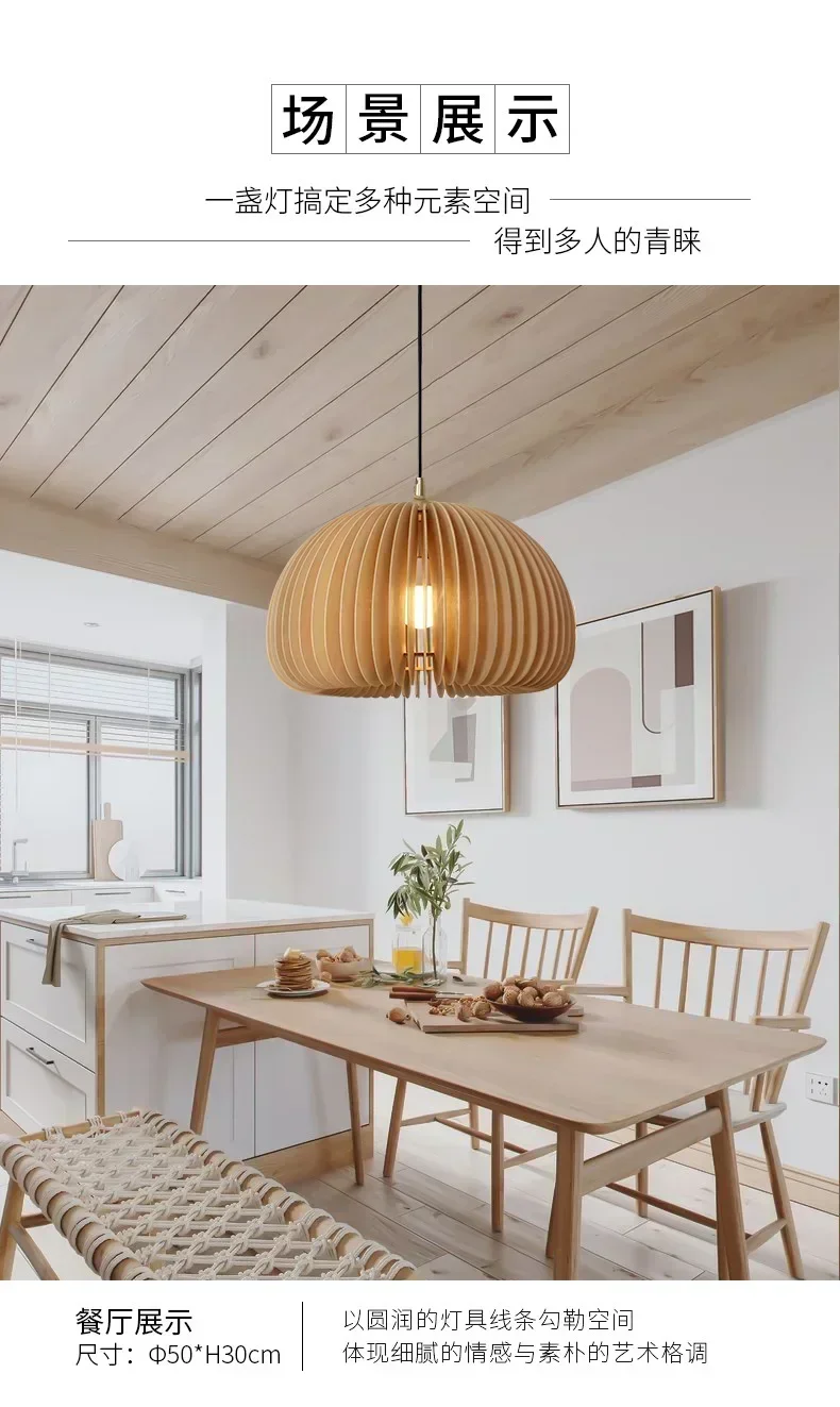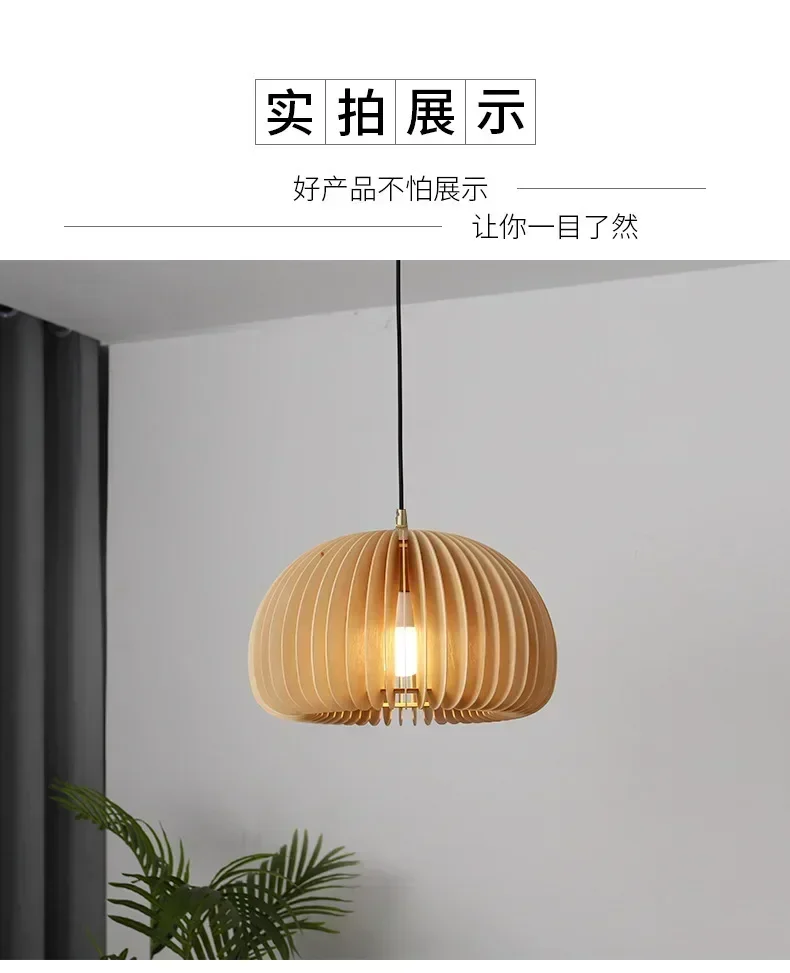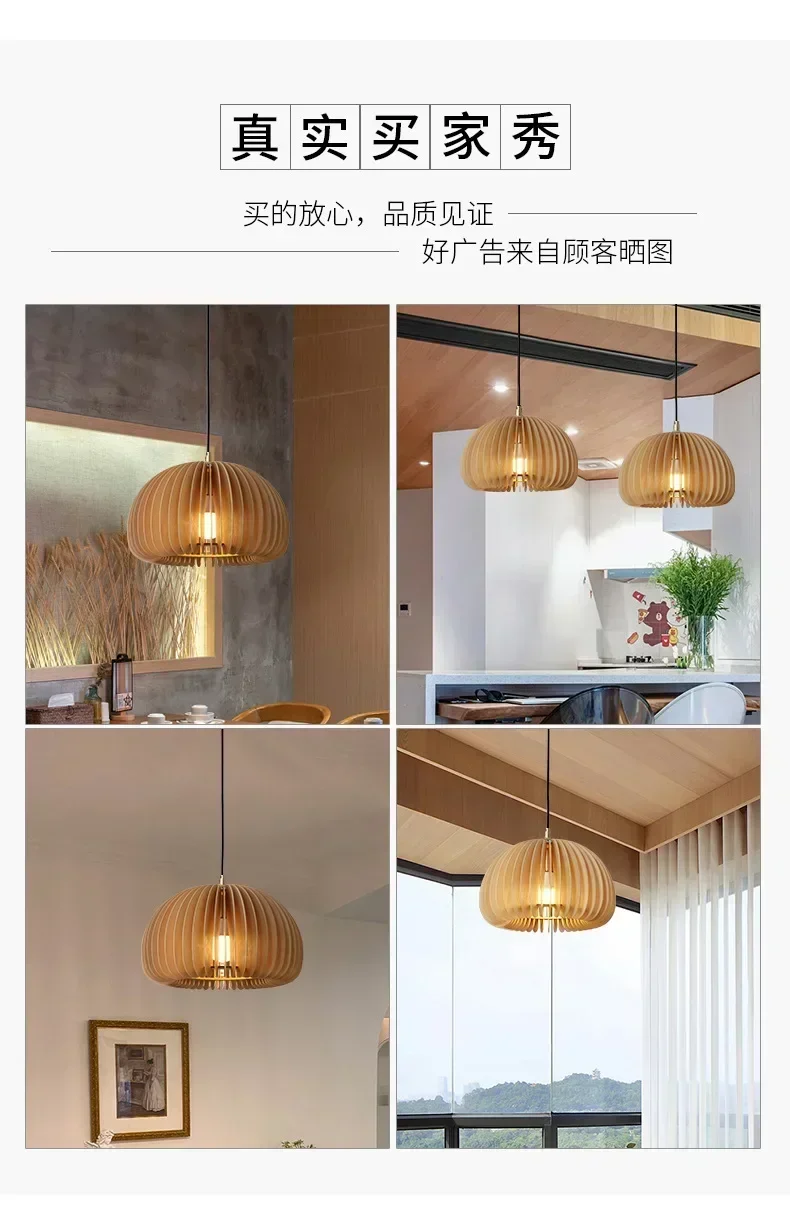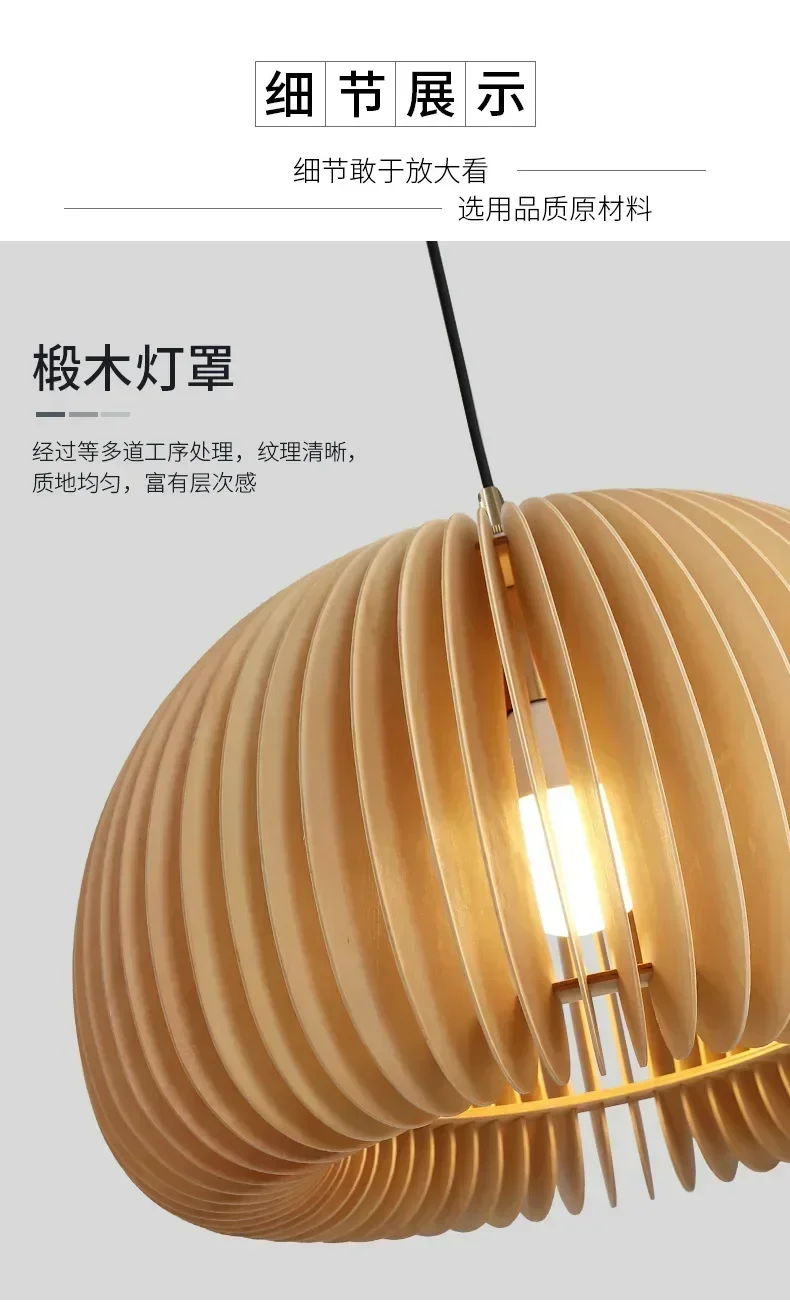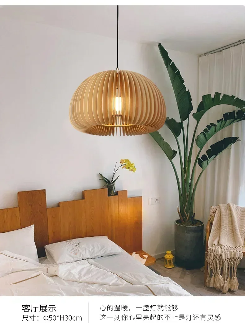 Wood Art Pendant Light Japanese style Dining Room Bed Room Bedside E27 Base Wooden Dia18/30/35/42cm Hanging Lamp Home Decorate