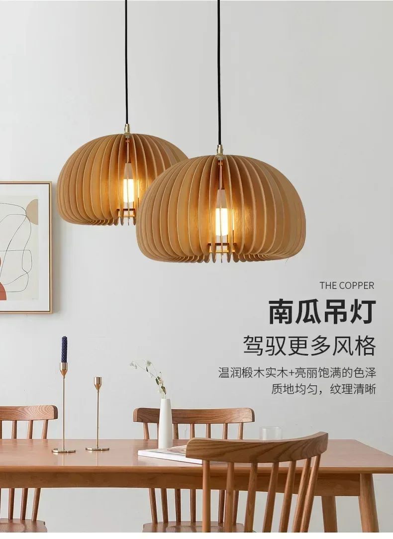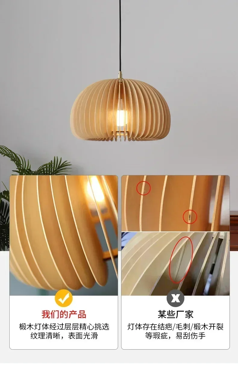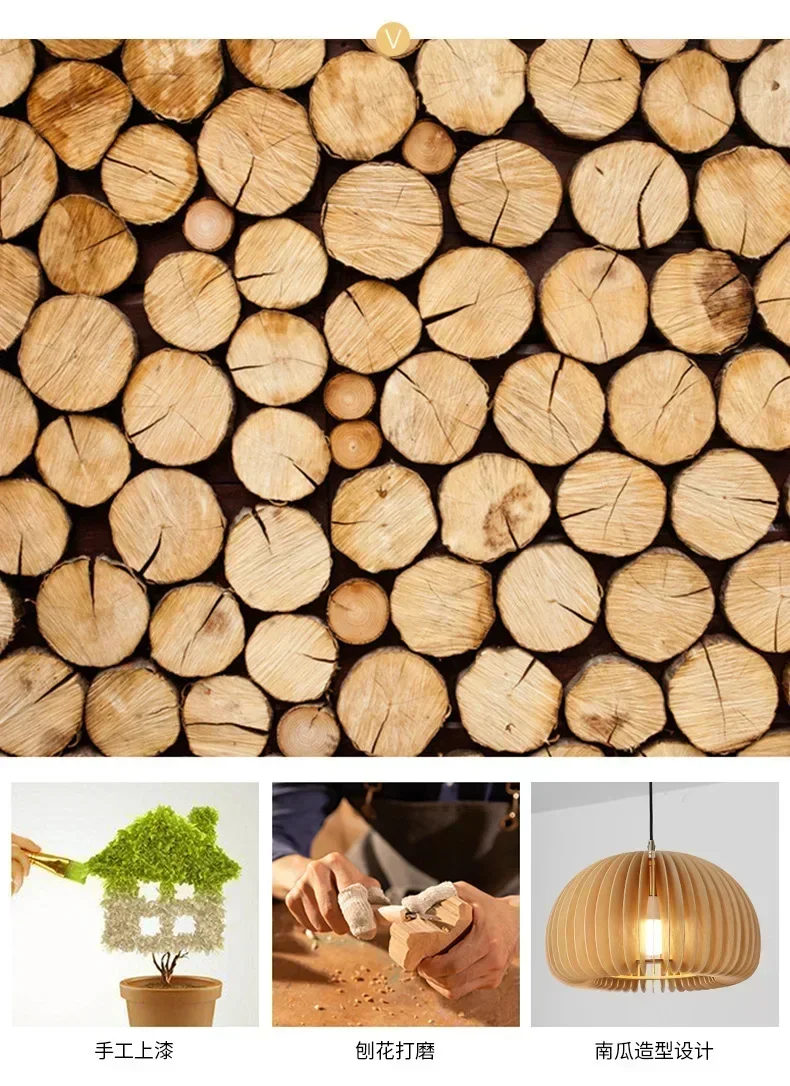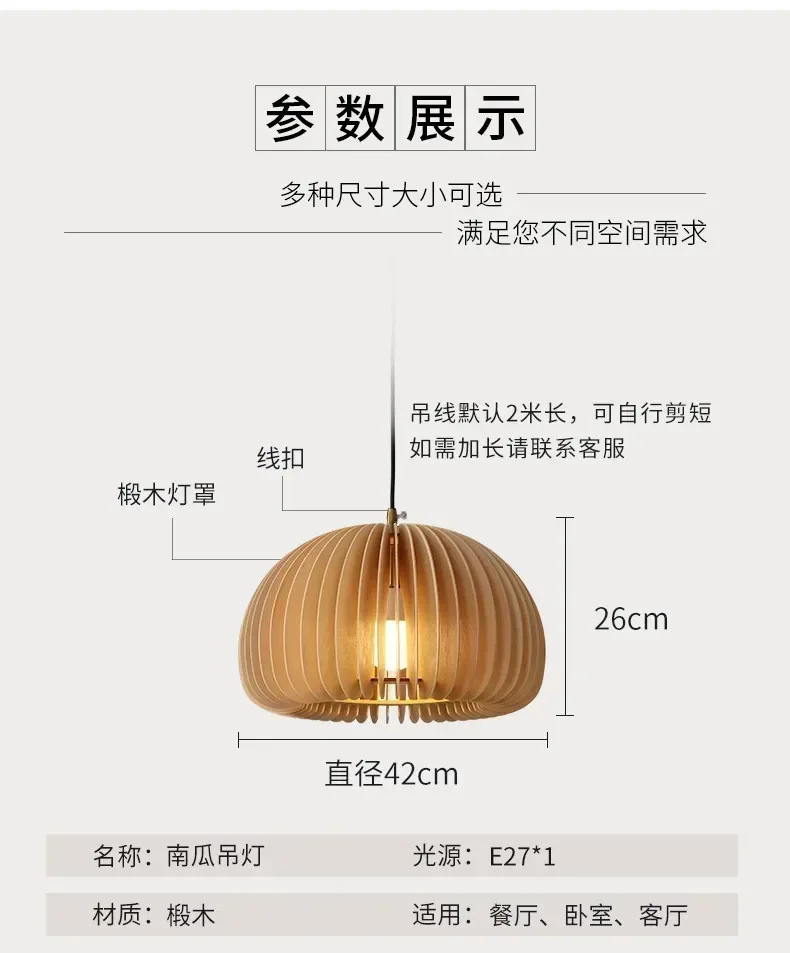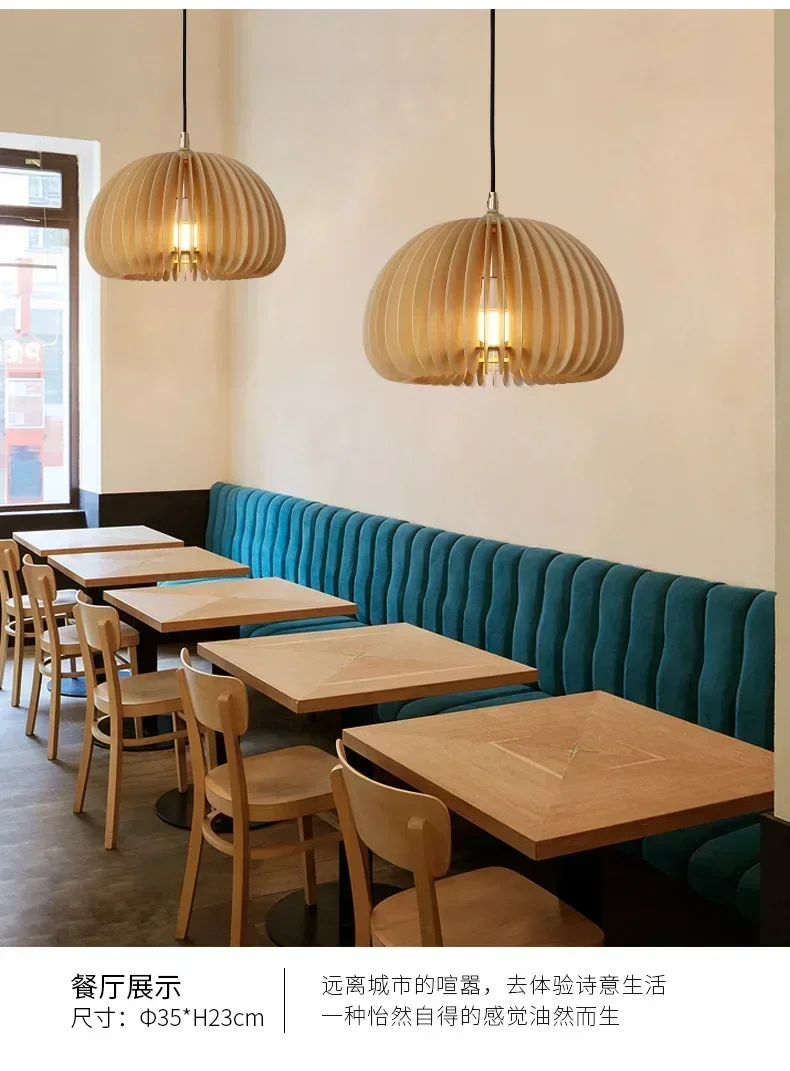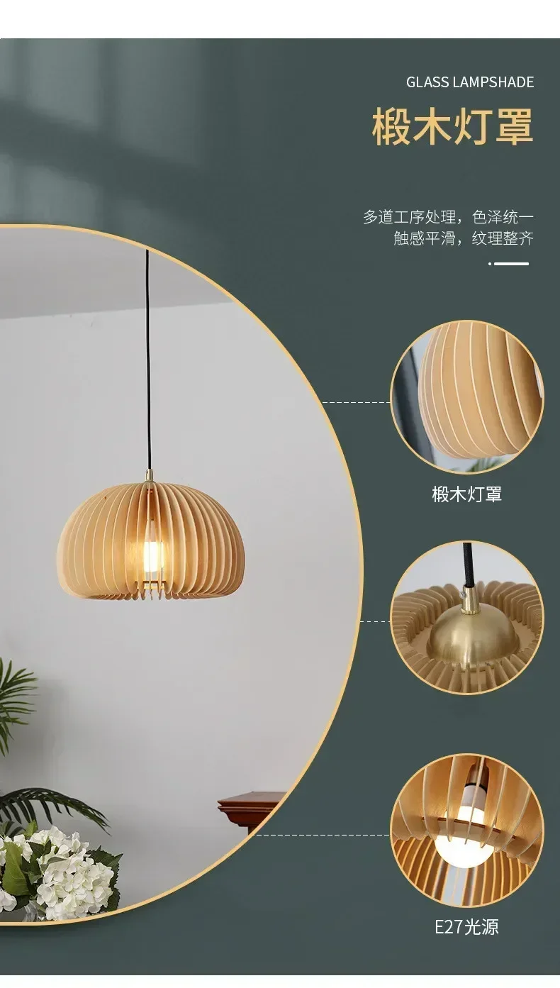 Wood Art Pendant Light Japanese style Dining Room Bed Room Bedside E27 Base Wooden Dia18/30/35/42cm Hanging Lamp Home Decorate