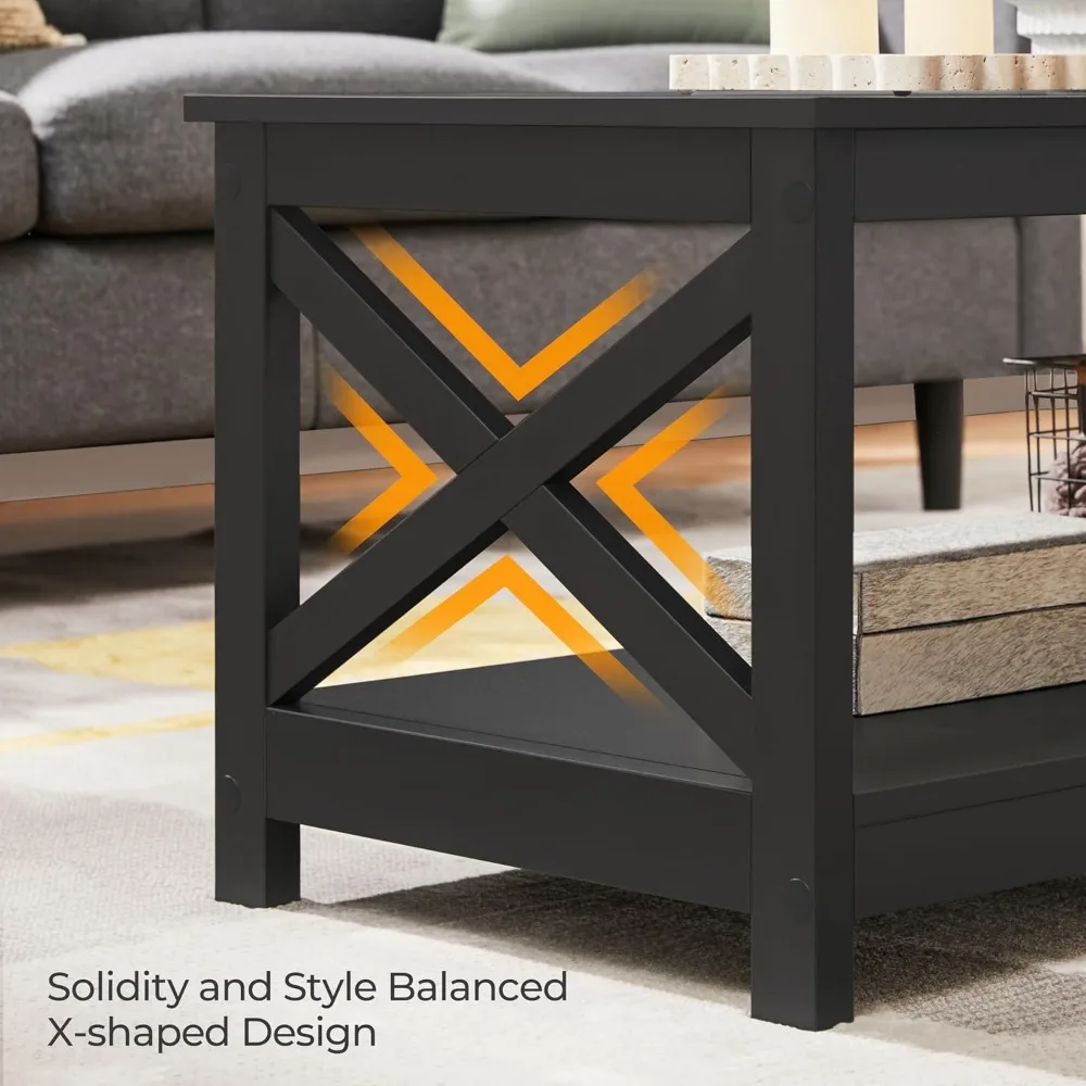 - Stable & Sturdy: The double X-shape structures bring extra stability and solidity to this living room table. The tabletop can bear up to 88 lb and the lower open shelf can hold 44 lb. For normal usage and your safety, please do not overload the table or stand on it