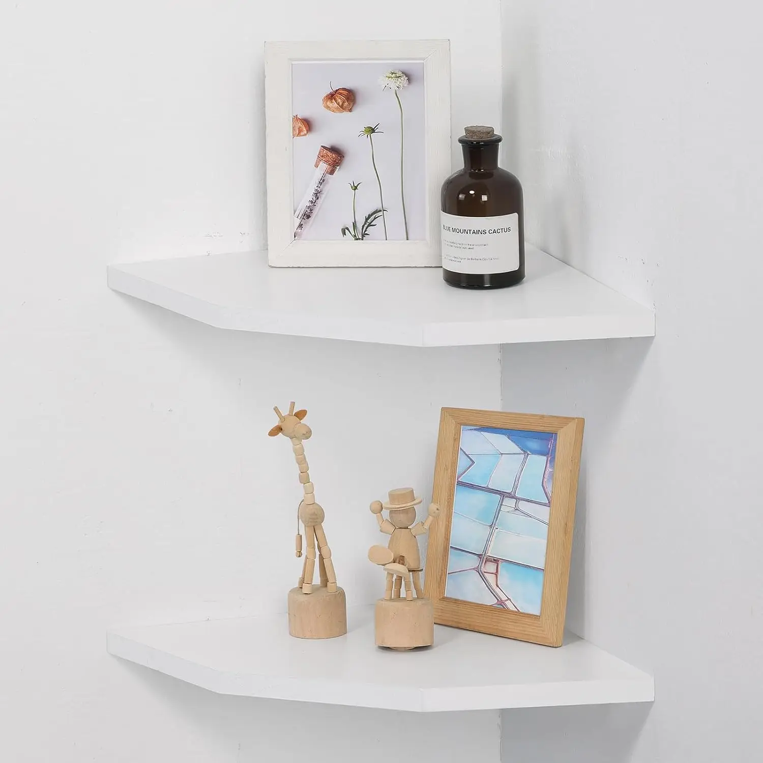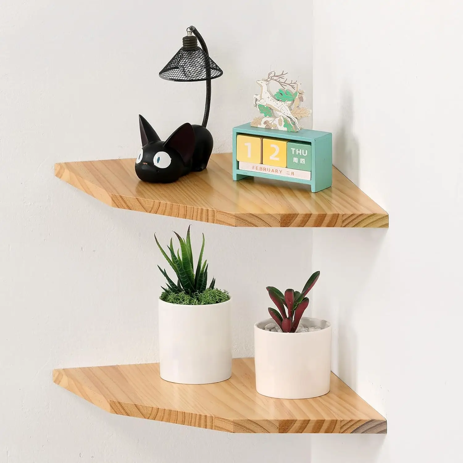 - Solid Wood Corner Wall Shelf: These corner wall shelves are designed with natural wood and stainless steel brackets, made of 100% Premium Solid Pine Wood, green and pollution-free. Our sturdy and beautiful corner shelves are suitable for any corner of your room to display your favorite decorative items.