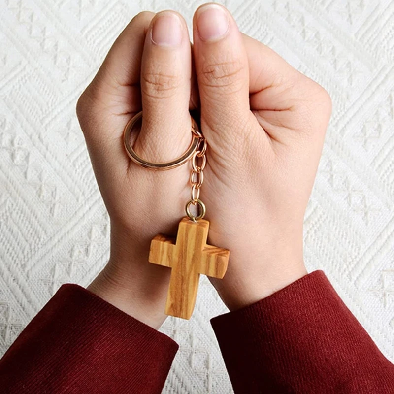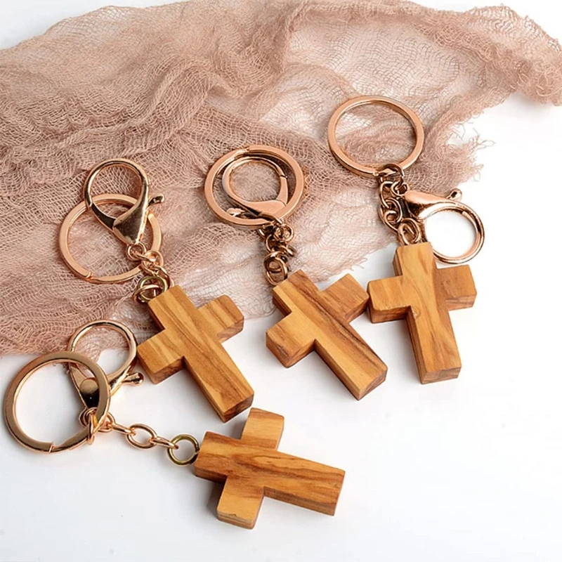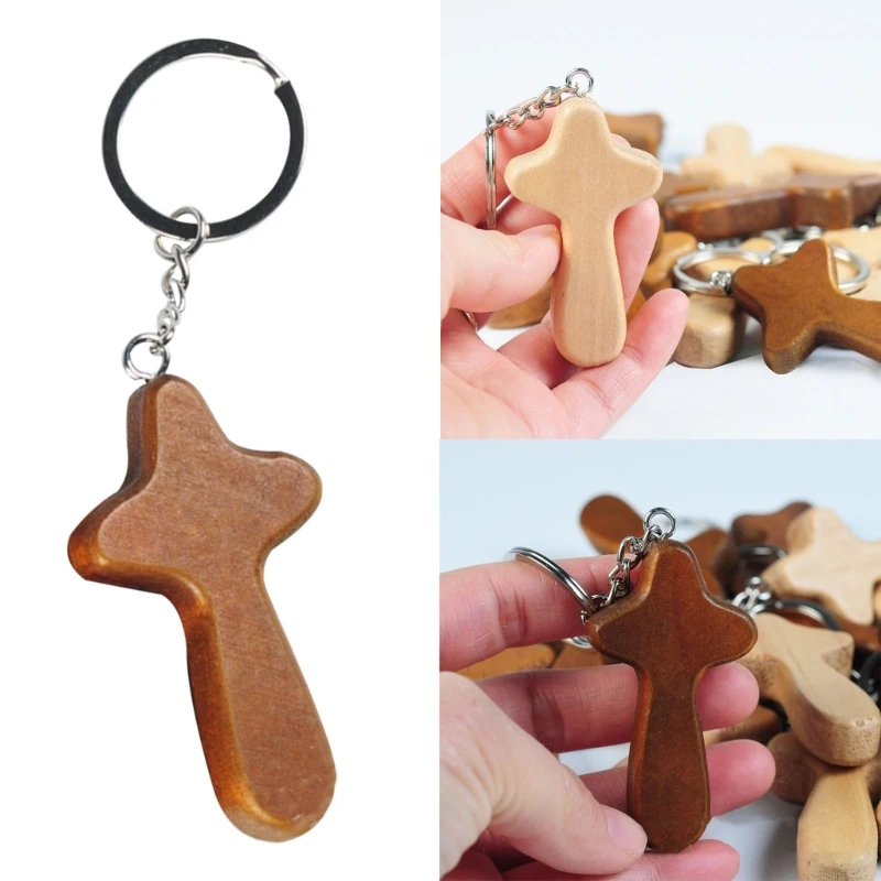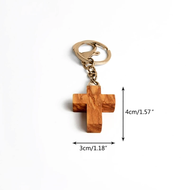1x Wood Cross Keychain