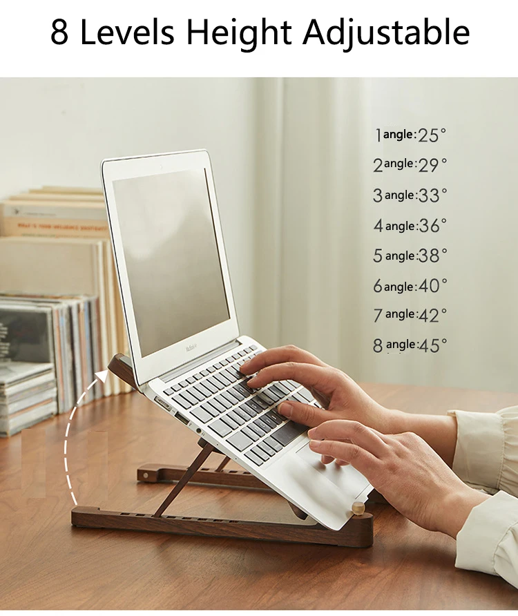 Type: Height adjustable laptop stand Material: Walnut 8 Levels height adjustable Using: Support 11-17 inch laptop.