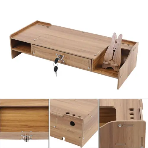 Efficient Organization: It's not just a computer monitor rack, it's an organizer. A lockable drawer and two compartments are designed to help you organize the items on your desk in an orderly manner, providing you with a clean and tidy office environment.