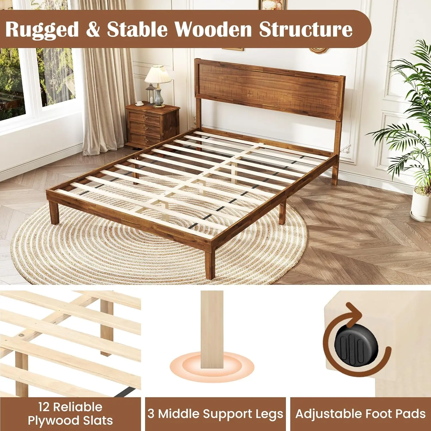 • Retro Walnut Headboard: The platform bed queen size features a retro walnut headboard that brings a vintage charm to your sleeping space. At 41" tall, the headboard offers comfortable back support, making it ideal for reading or lounging in bed.