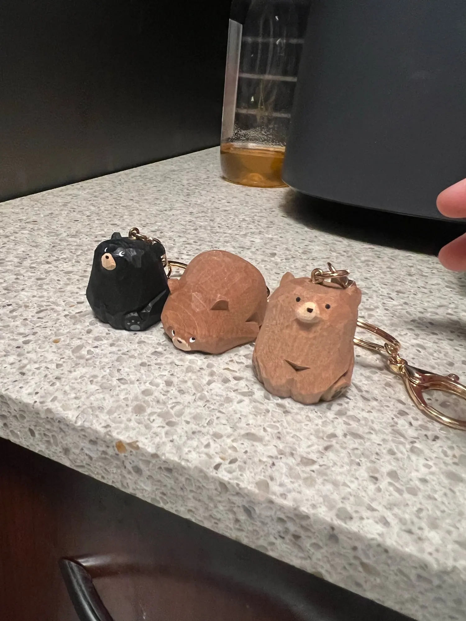 Wooden Carved Bear Keychain Cute Cartoon Animal Keychain Creative Exquisite Bear Couple Keychain Bag Pendant wooden teddy bear