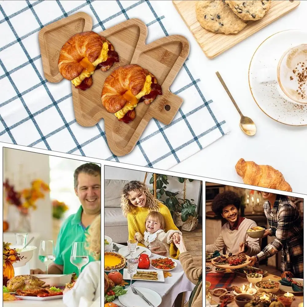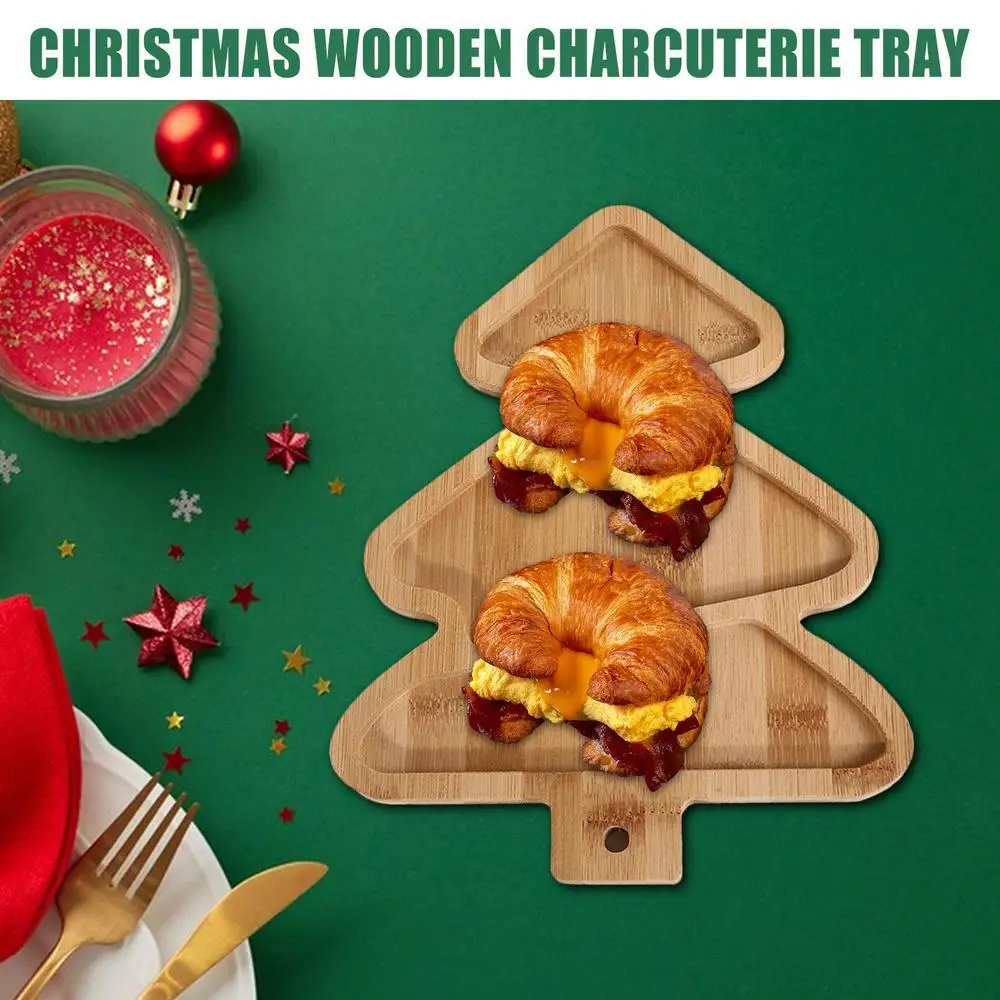 1.Unique and Cute Shape: Our Christmas Charcuterie Board is adorned with Christmas bells and tree shape, adding a warm festive atmosphere. With natural wood grain colors and a unique tree-shaped structure, it's perfect for serving desserts and fruits during the holiday season