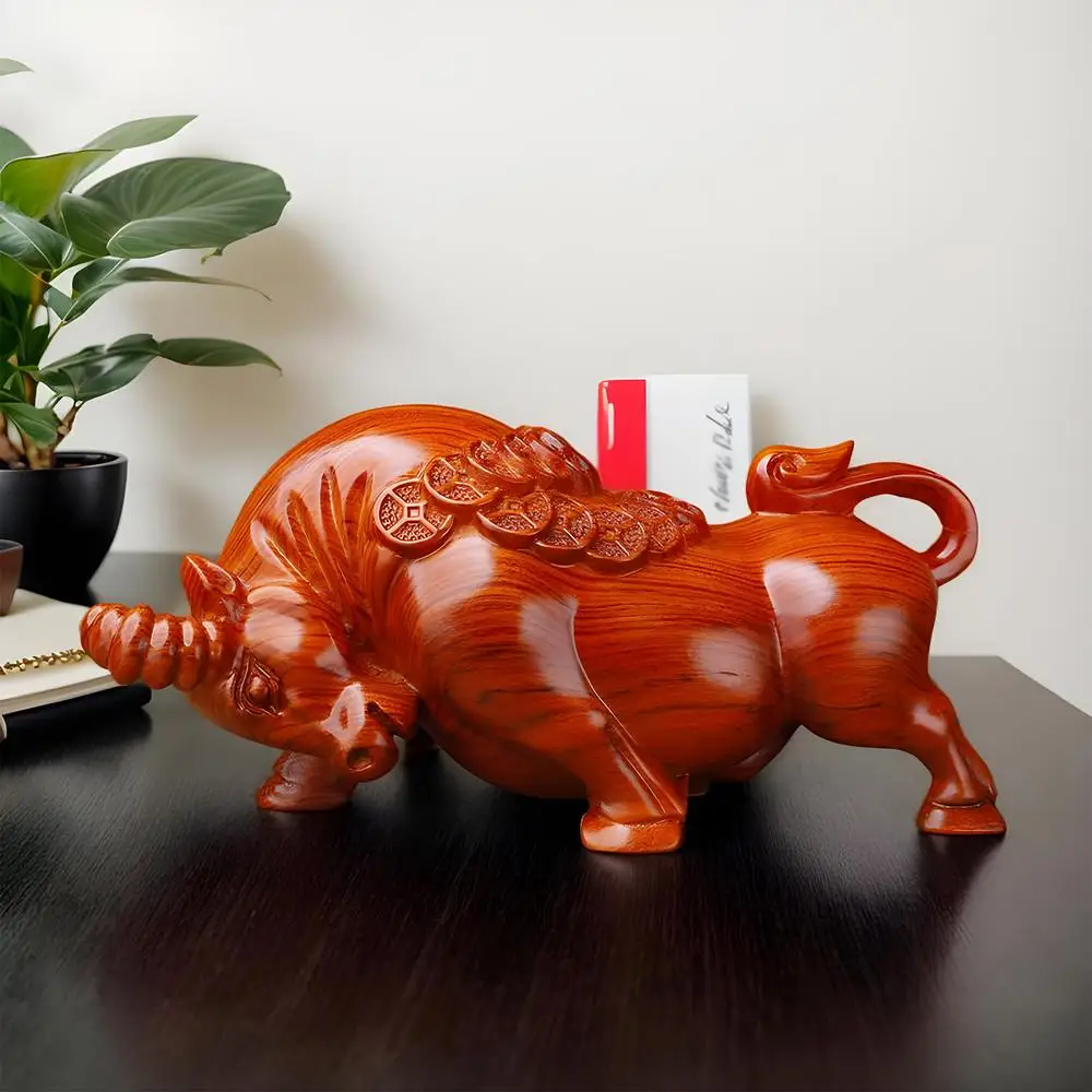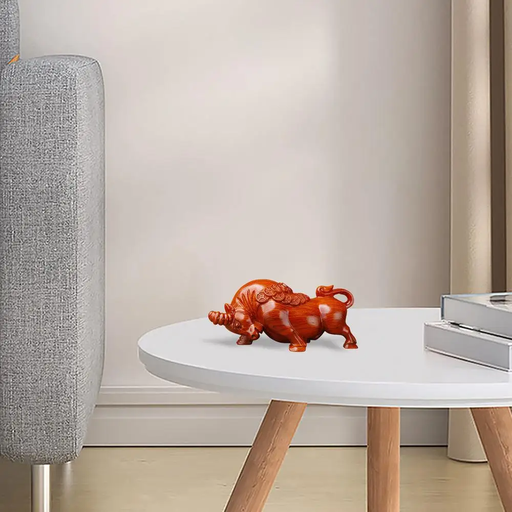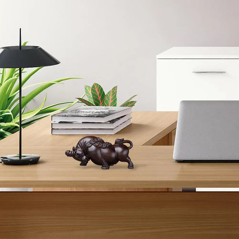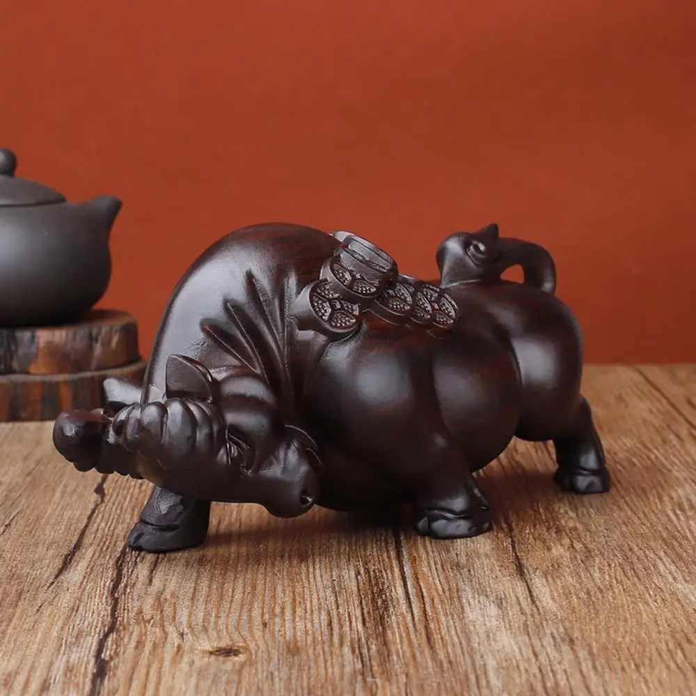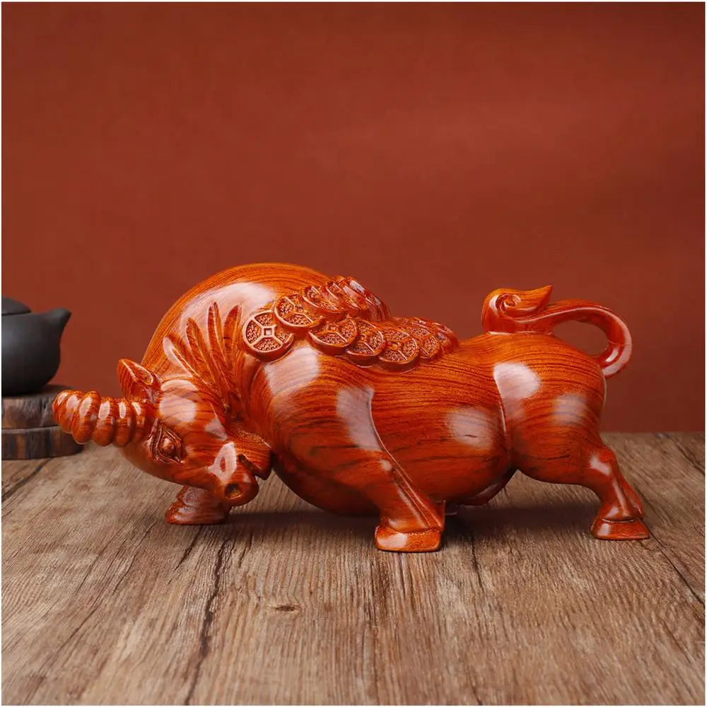 Wooden Cow Statue Ebony Wood Carving Bull Ornaments Rosewood Bullish Wood Carving Vivid And Lifelike Home Table Decor Figurine