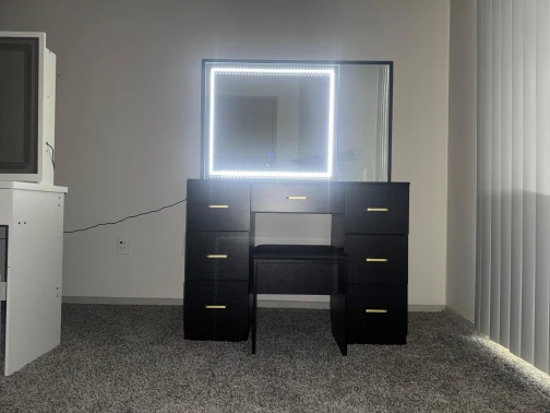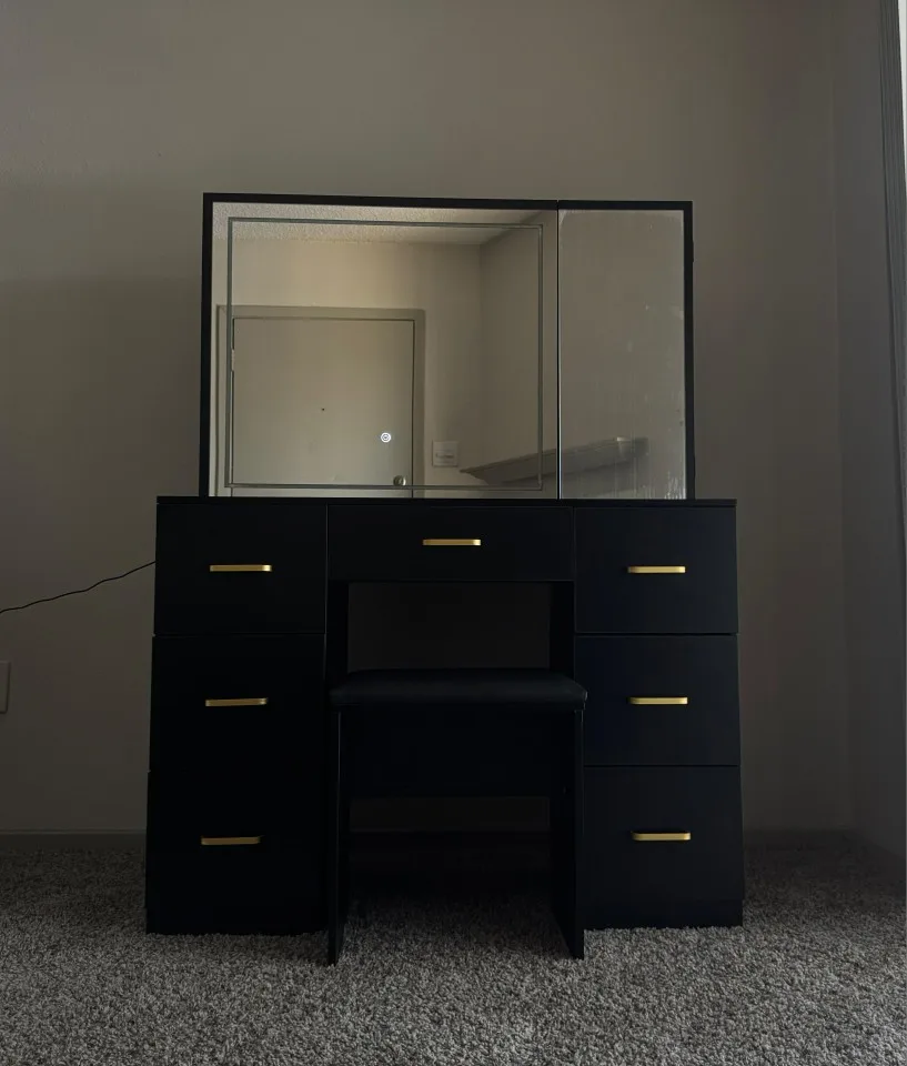 ✅【Simple and Stylish Design】With a sleek black exterior and elegant golden handles, this vanity showcases a simple yet stylish design. It effortlessly complements various home decor styles, from modern to traditional. It's not just furniture; it's a tasteful addition that can also serve as a wonderful gift for special occasions.