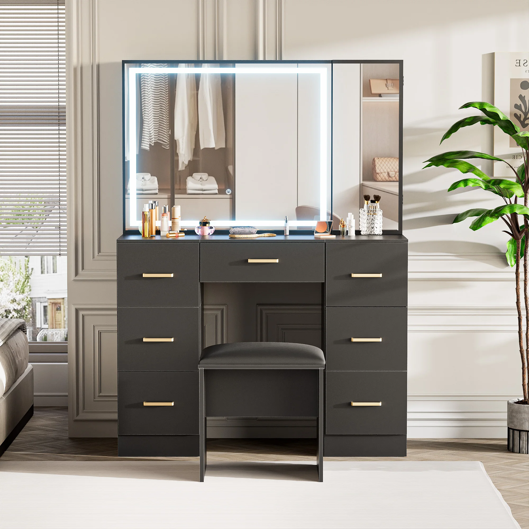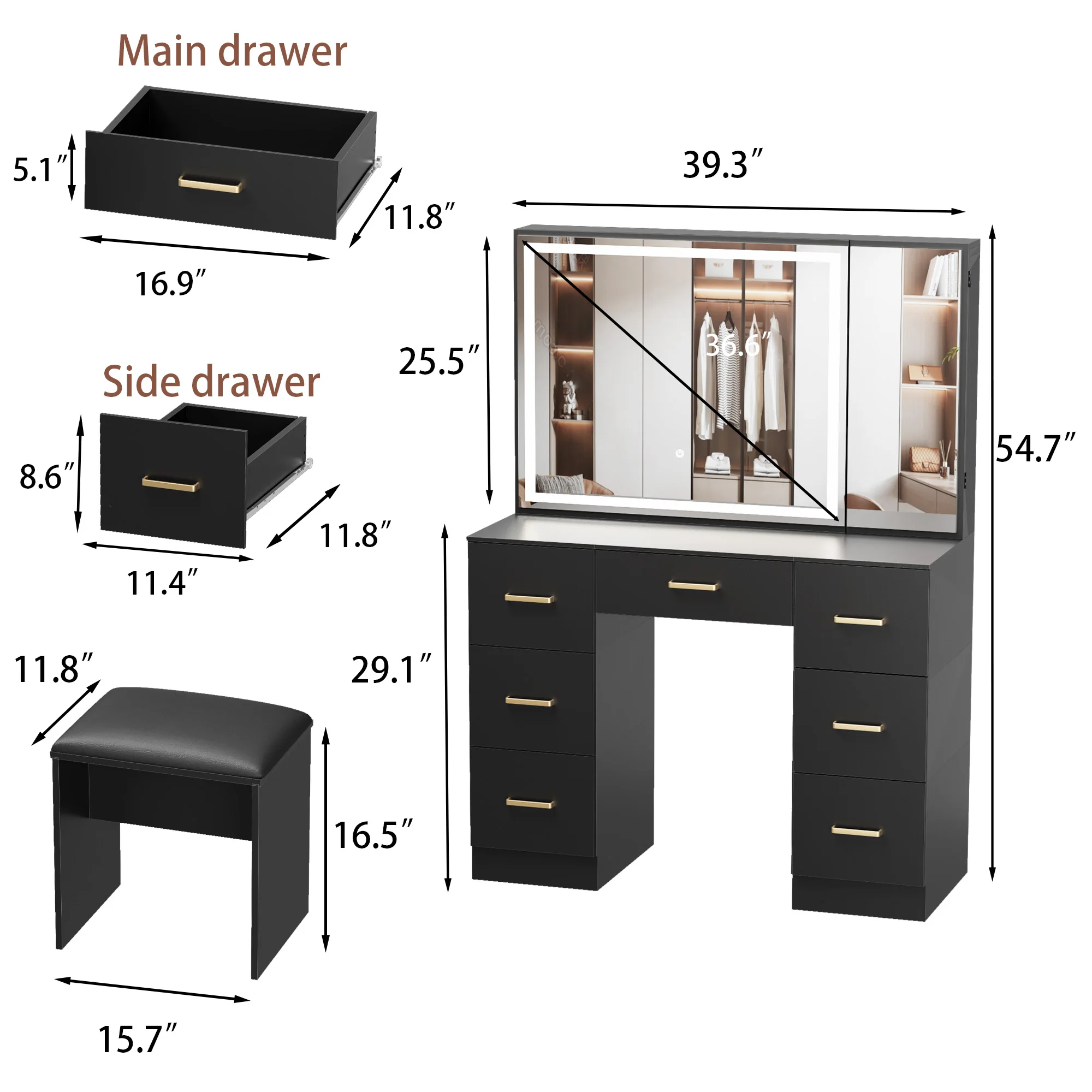 ✅【Large Capacity Space】Boasting 7 drawers and hidden storage behind the mirror, this vanity provides abundant space. The drawers are great for organizing makeup and accessories, while the secret storage is ideal for valuables. The spacious tabletop can hold office items too, combining functionality and saving space efficiently.