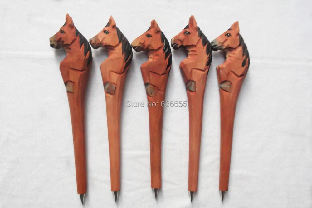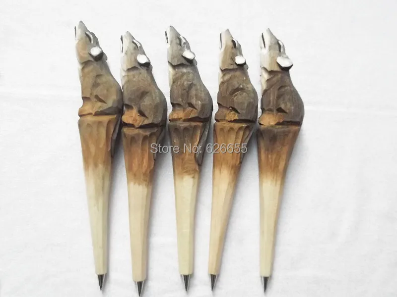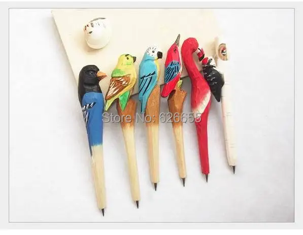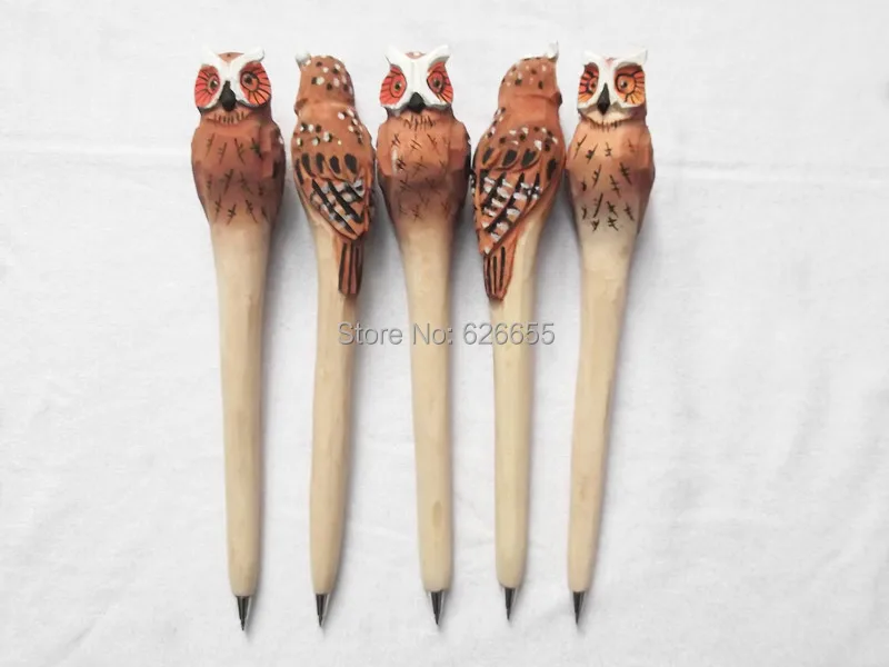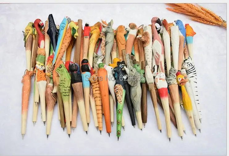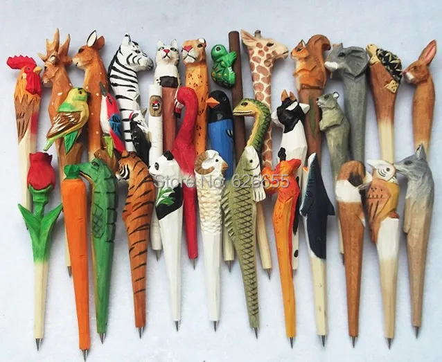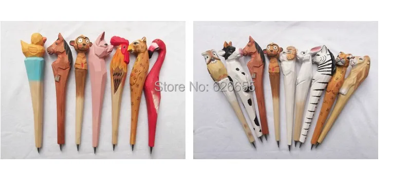 Wooden folk art animal carving creative ballpoint pen office Animal shape ballpoint carving wood hand carved pens free shipping