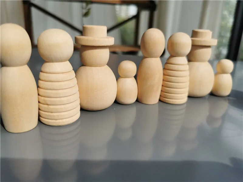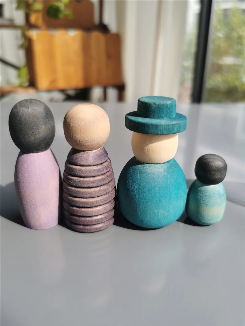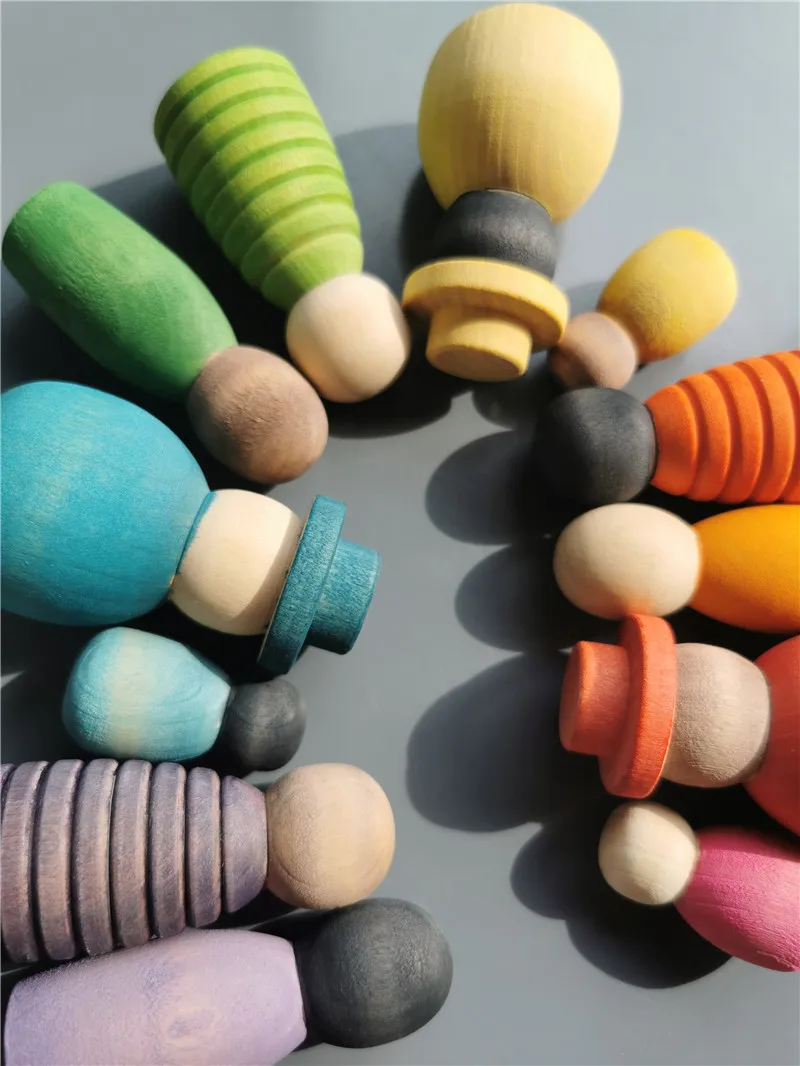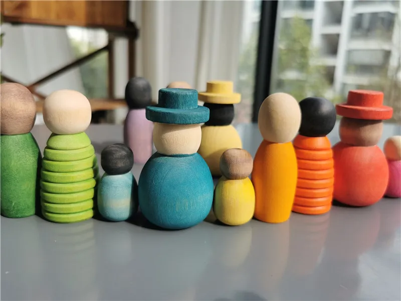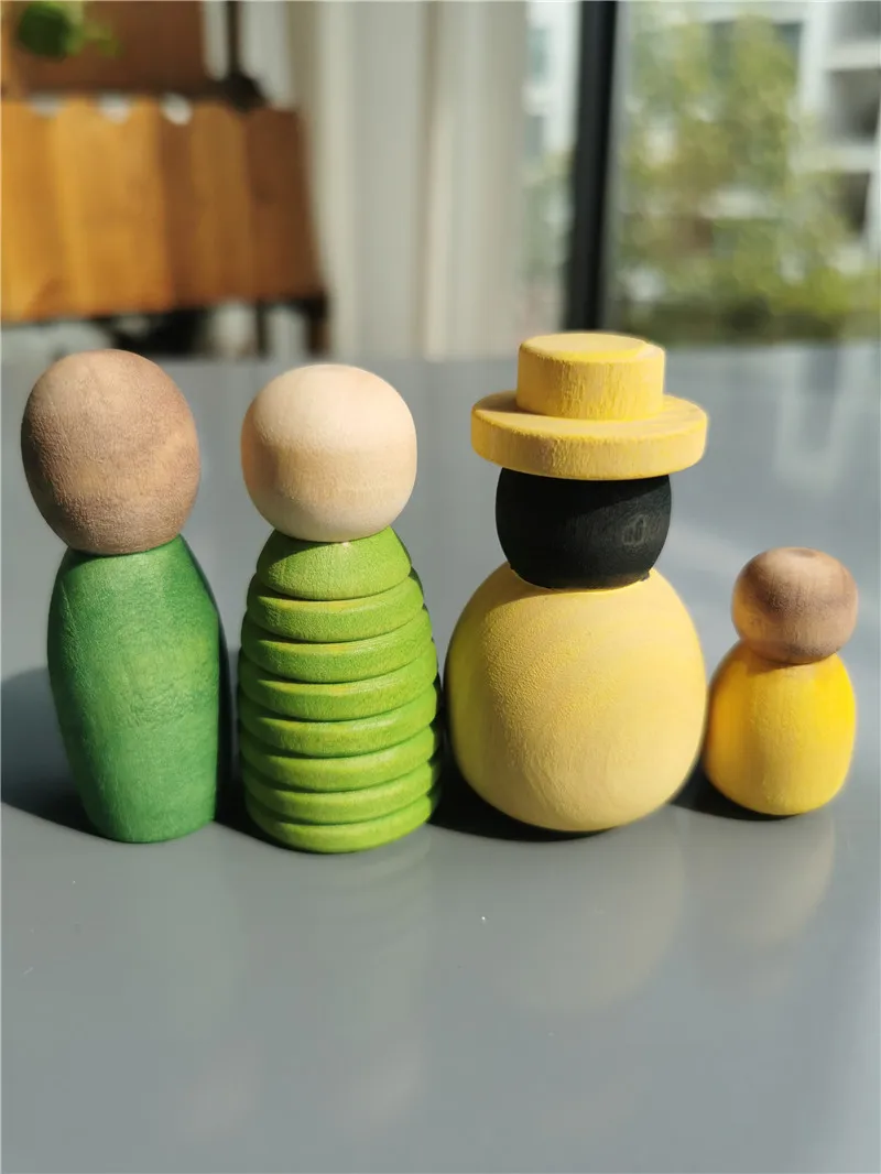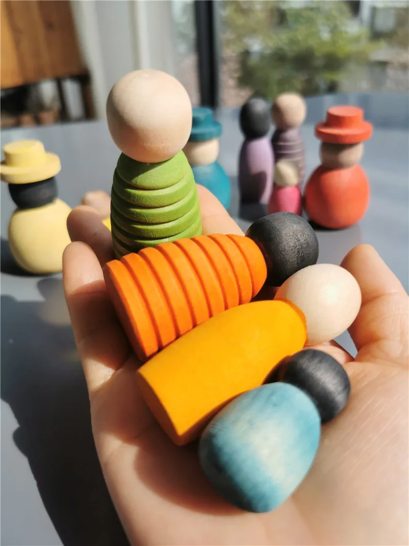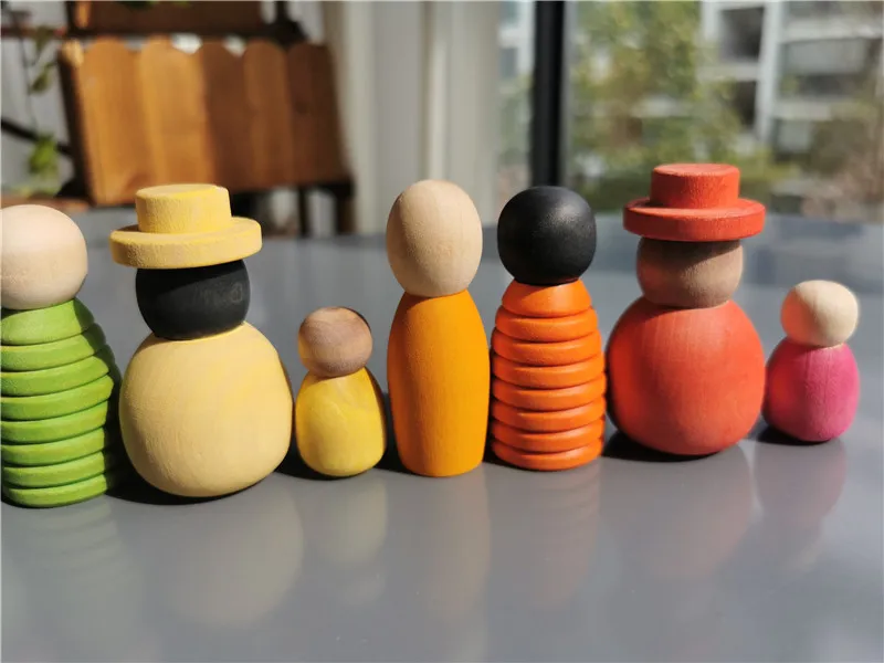 Wooden Montessori Toys Handmade Rainbow Peg Dolls Together Stacking Figurines Blocks For Children Open-ended Play
