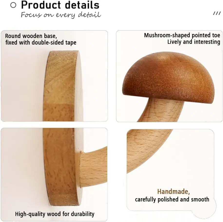 【Solid Wood Materials】Our mushroom wall hook are made of high-quality solid wood, It is made of beech wood at the bottom and camphor wood at the top,This wall hanger hooks is handmade and looks beautiful.