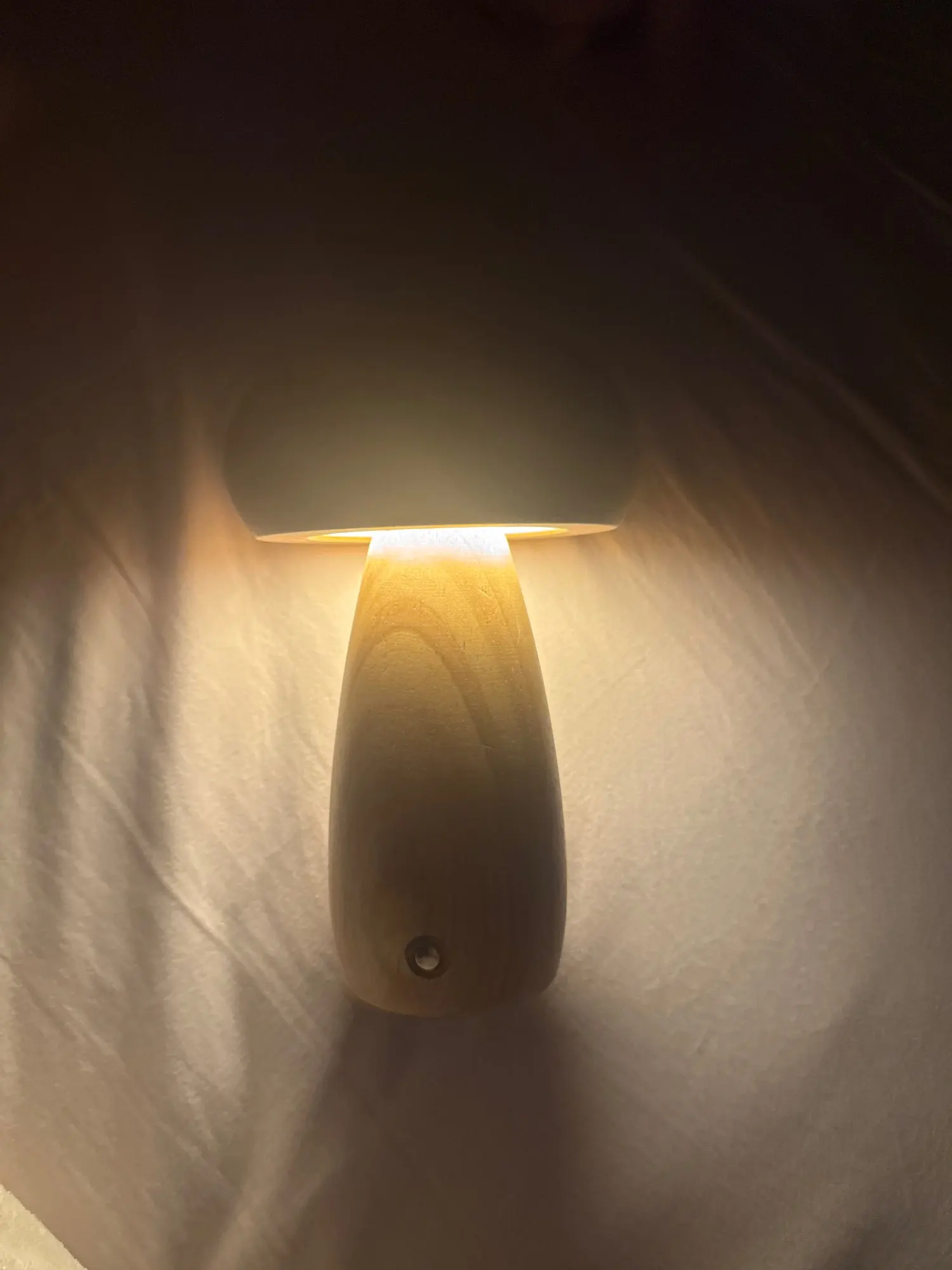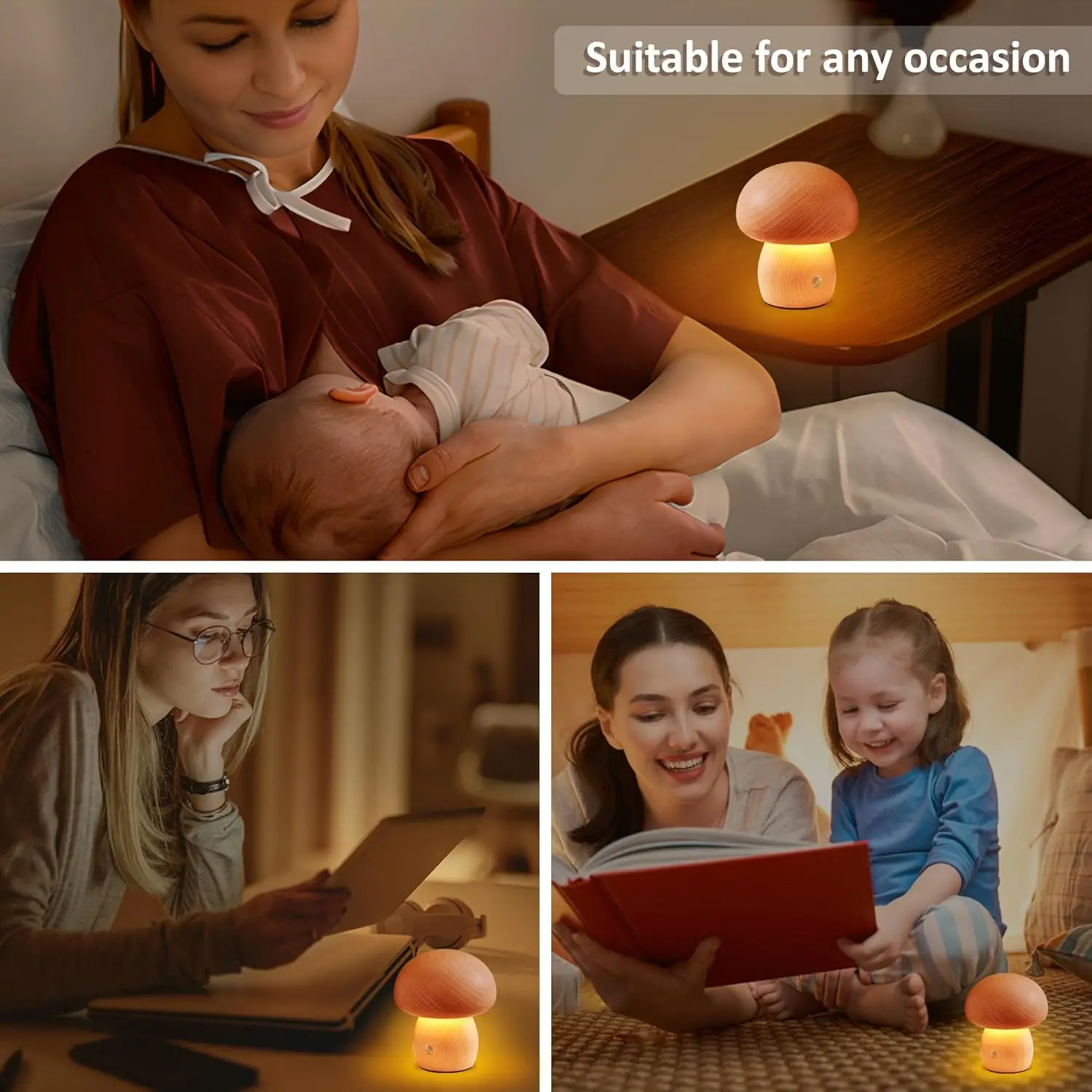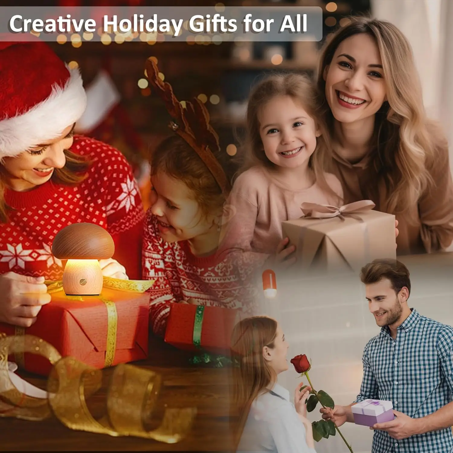 Wooden Mushroom Lamp, Portable Cordless Rechargeable Battery Operated Lamp,Stepless Dimming, Night Light for Birthday Gifts