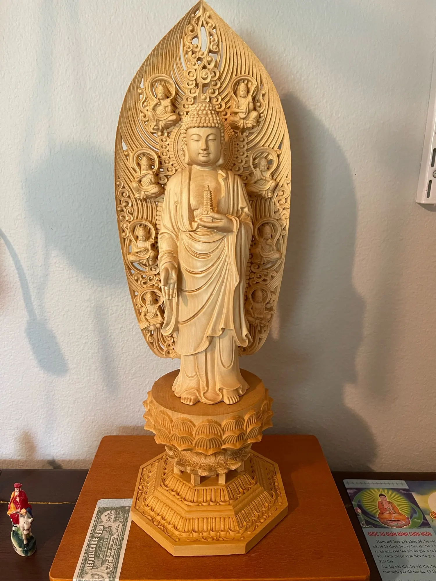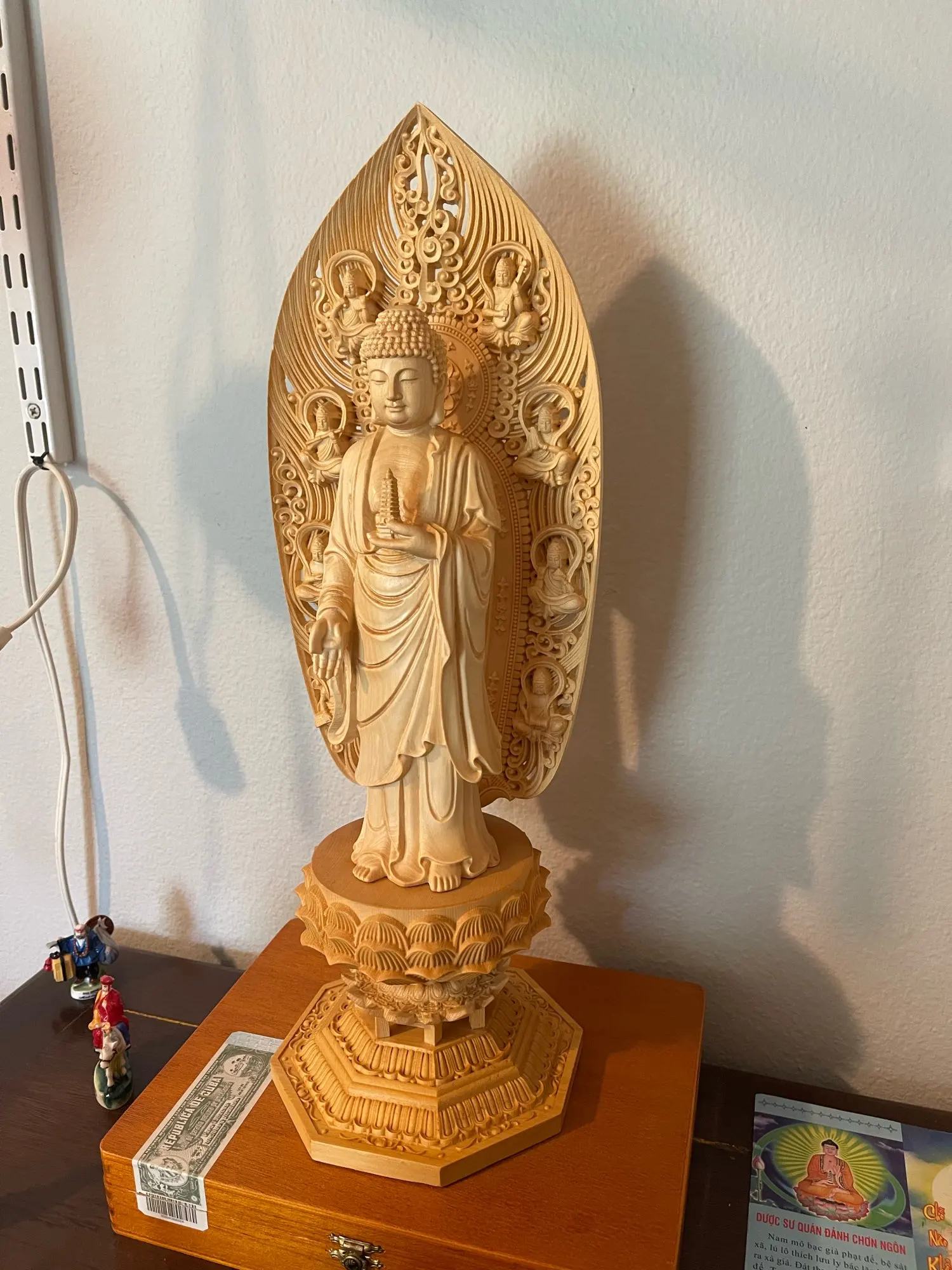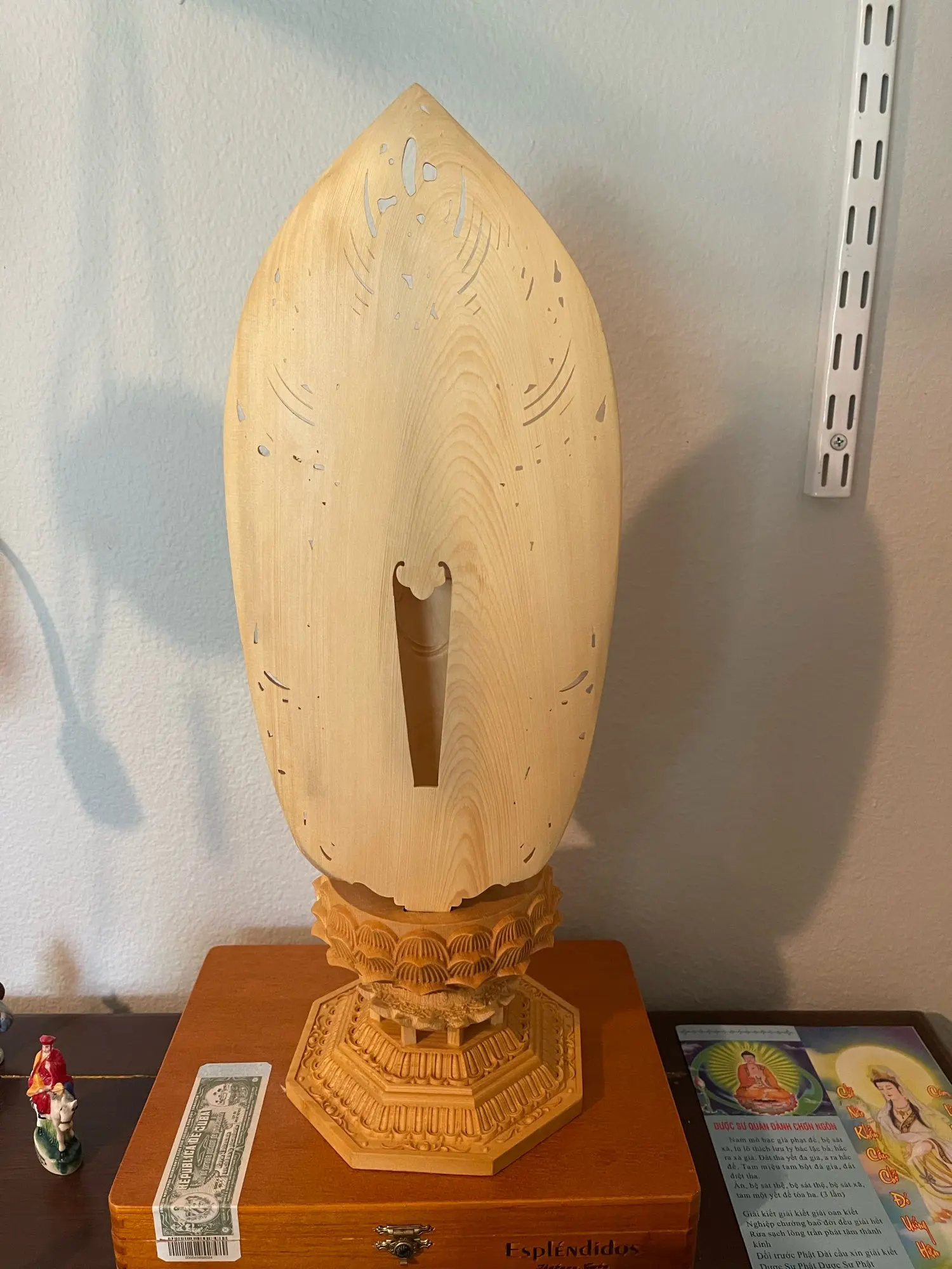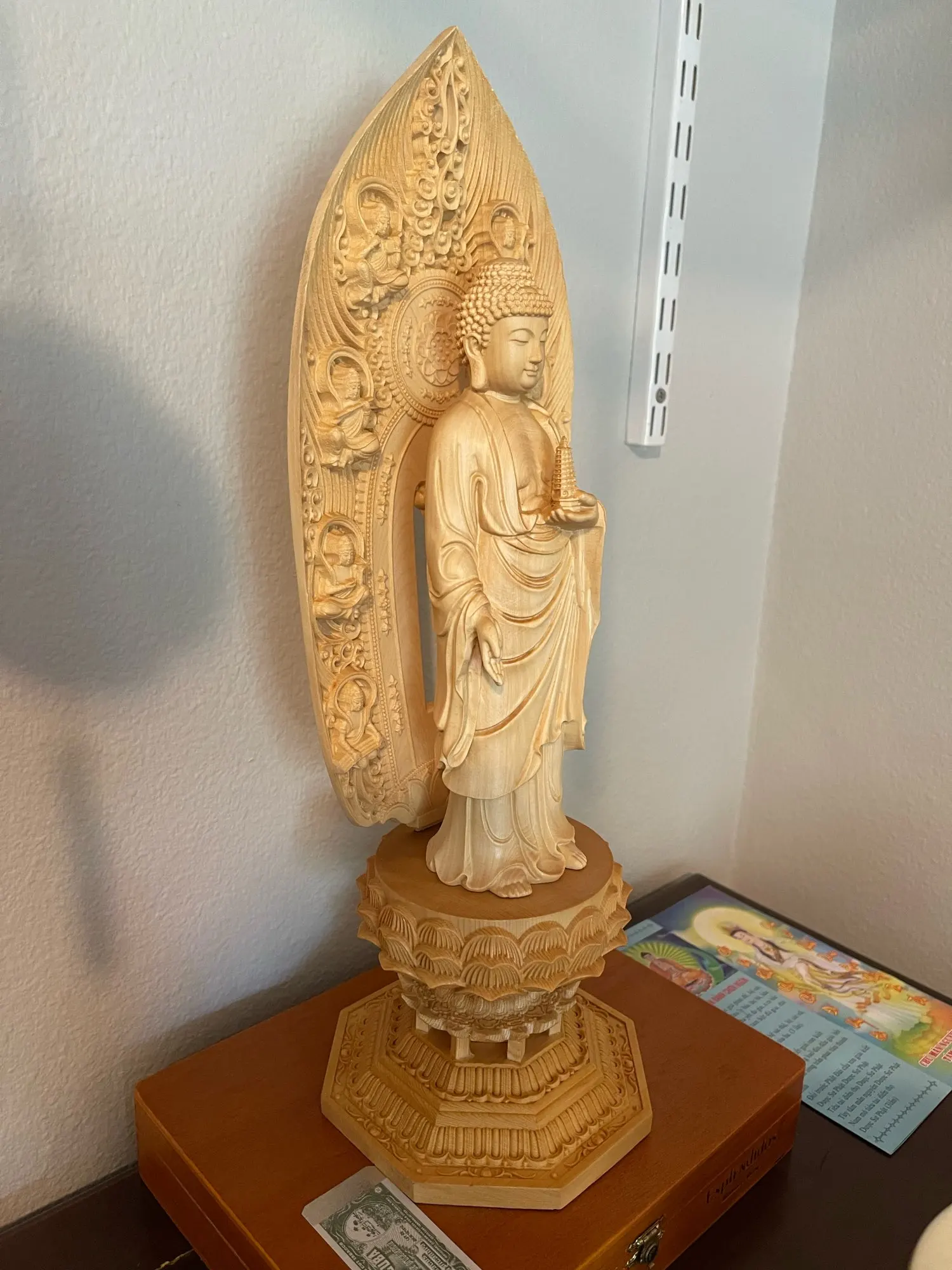 Very nice wooden statue as described. Perfect for my alter. Do recommend this seller and good luck treating your illness