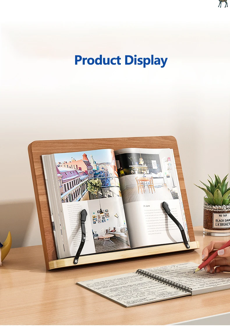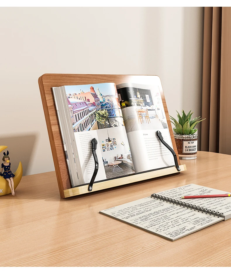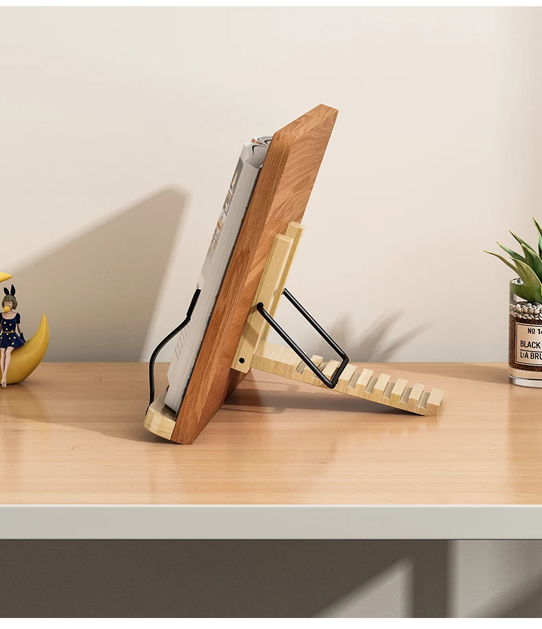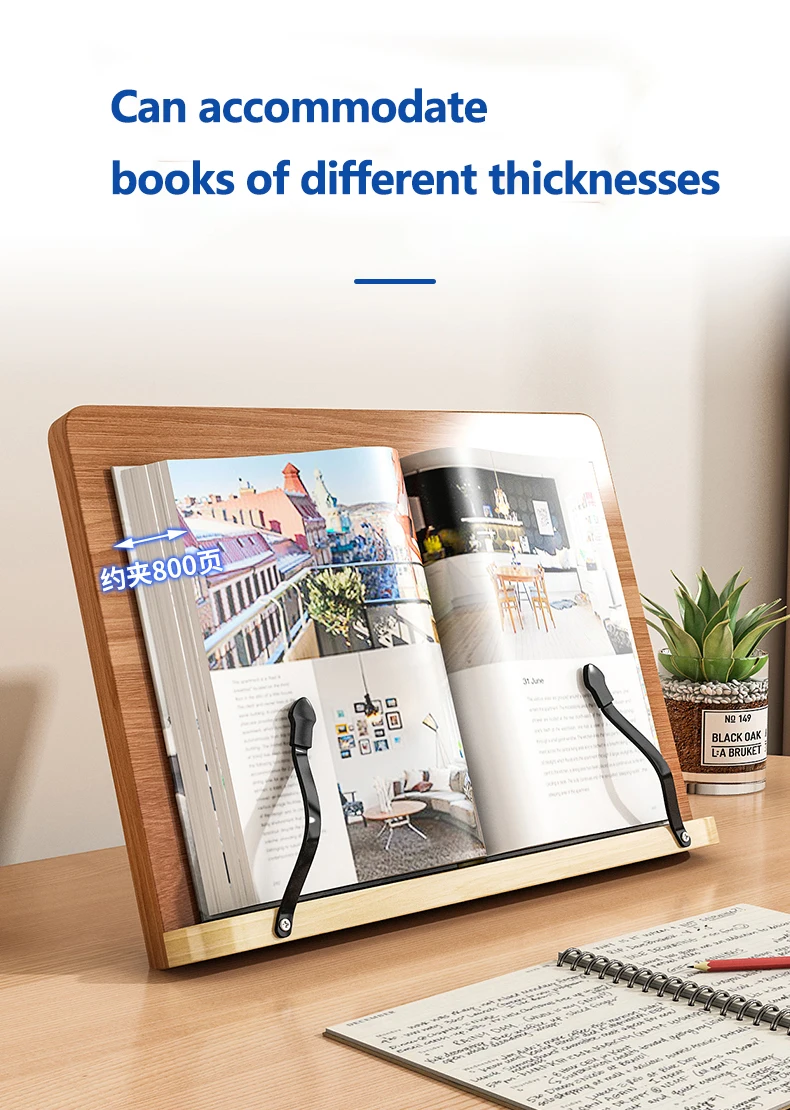 Wooden Reading Stand Adjustable Book Holder Student Book Notebook Stand Clip Bookshelf for Note-taking Portable Reading Desk