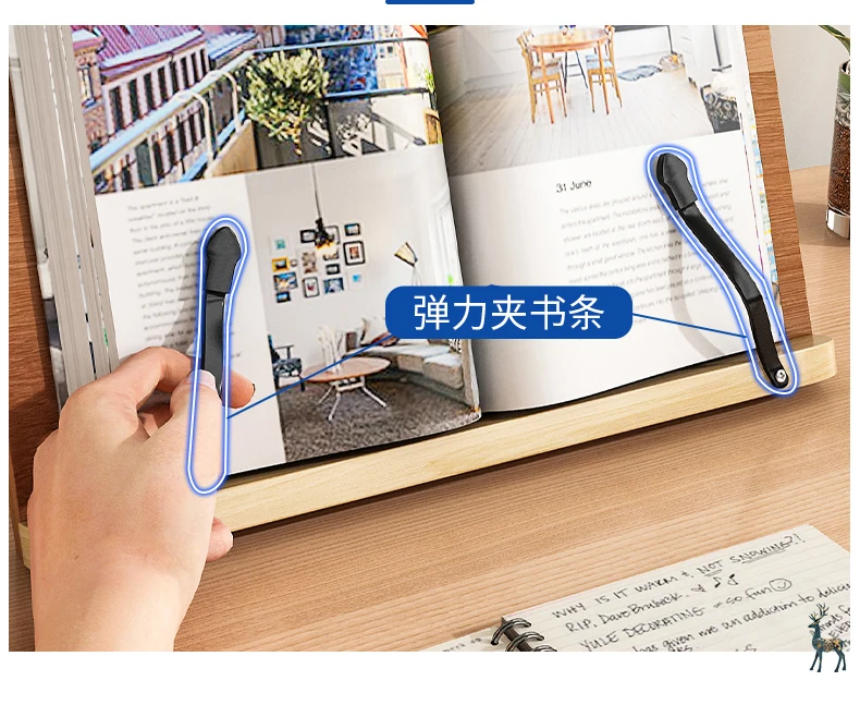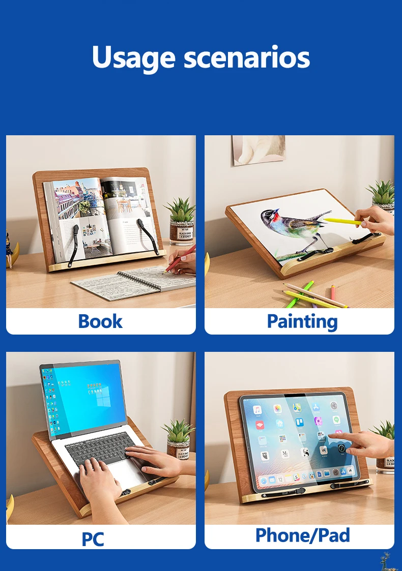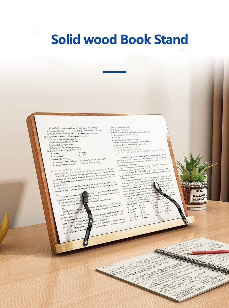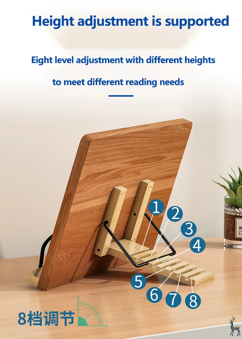 Wooden Reading Stand Adjustable Book Holder Student Book Notebook Stand Clip Bookshelf for Note-taking Portable Reading Desk