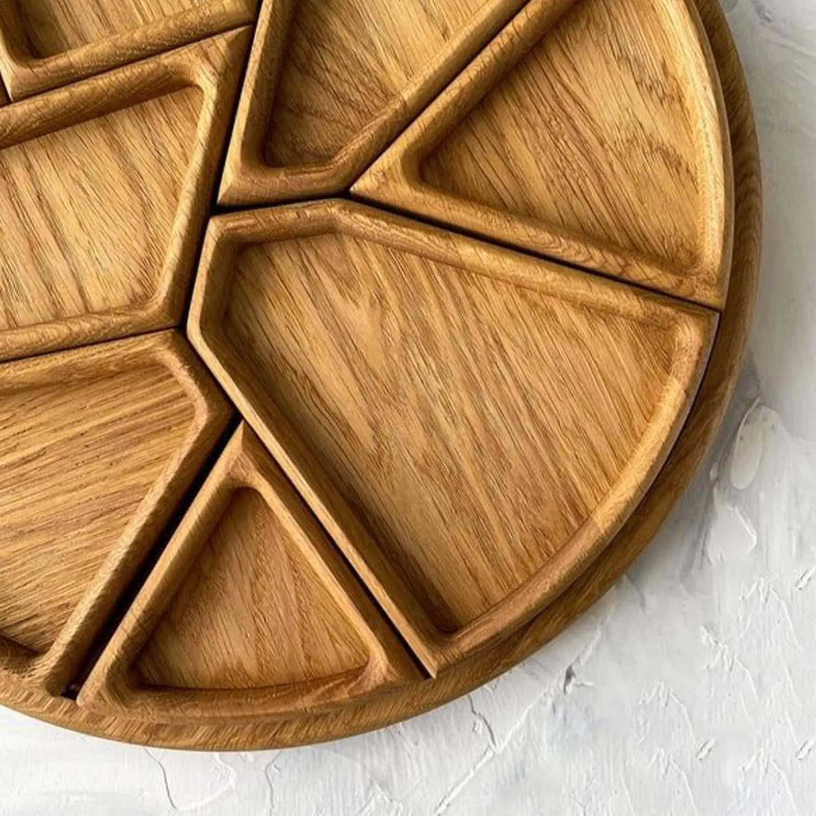 5.Upgraded Table Setting: Designed for hosting needs, this tray combines natural wood texture and modern geometric patterns to create sophisticated food presentation options