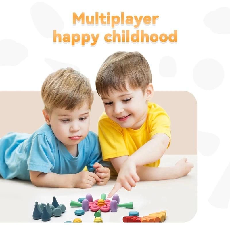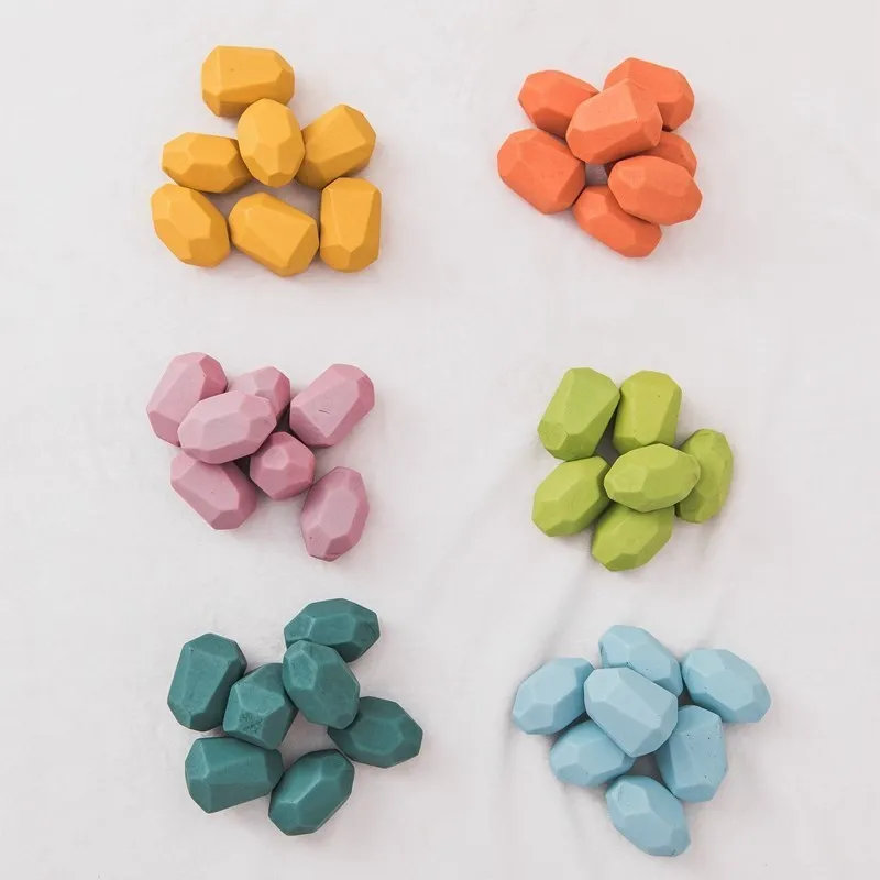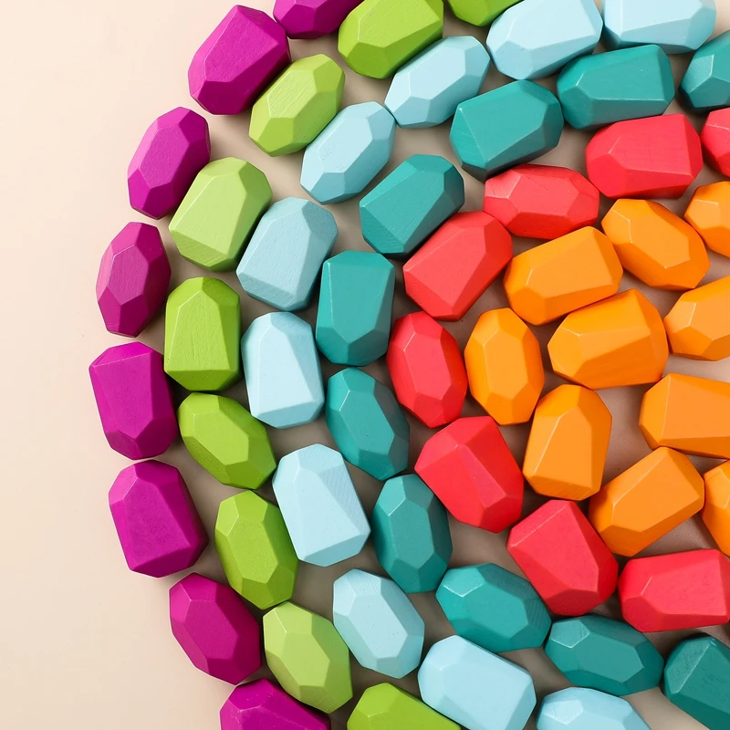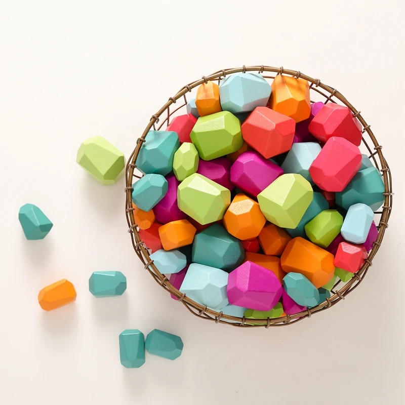 Wooden Rainbow Stones Building Blocks Colorful Wood Toy Block Stacker Balancing Games Montessori Educational Toys for Children