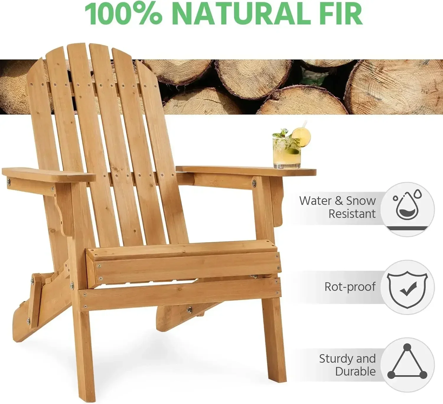 • Natural & Simple Adirondack Chair, Less is more: How to live up to this precious spring? Fit into it! This is what our Adirondack chair is for. Made of solid fir wood, we keep its original natural color; combined with clean lines, it is so natural and fresh that it is born to belong to your garden. The foldable design and time-tested quality make it a practical outdoor essential