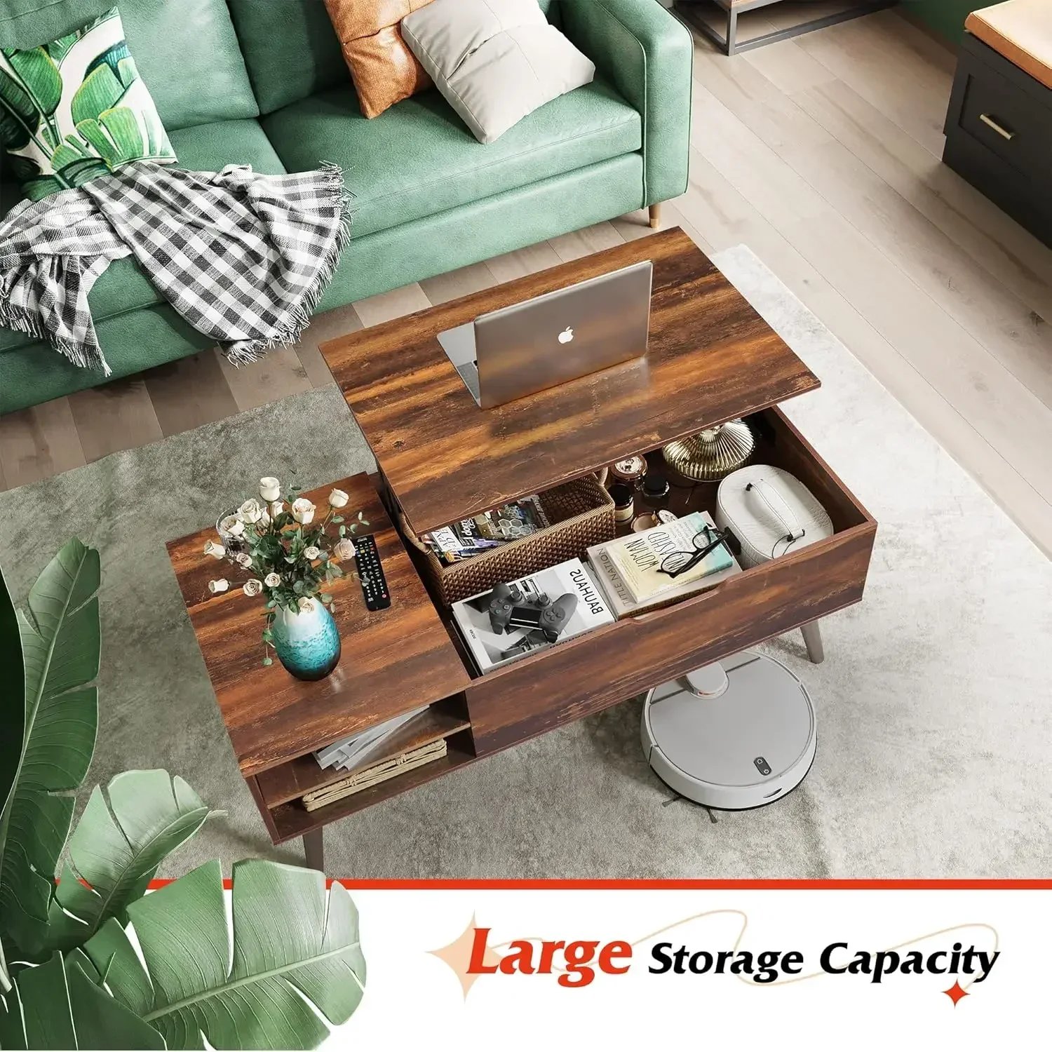 - 【Lift Top Design】When sitting on your sofa, the height of other center table may not be enough. This lift top coffee table has an extending top that lifts up to provide a floating raised work. surface,So you can working,dining and storage living room items here.