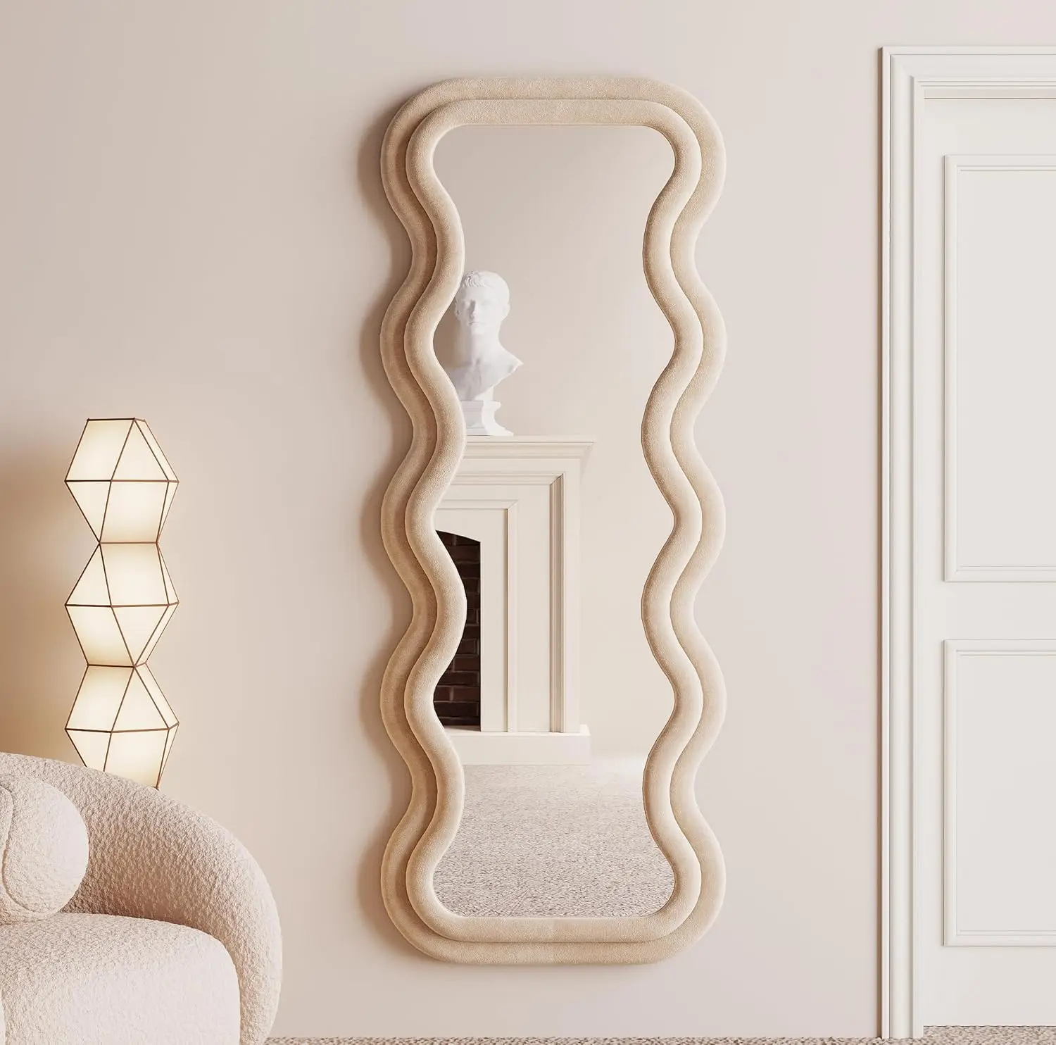 • WAVY DESIGN: The shape of the full length mirror uses an irregular design. The wavy shape makes the entire mirror looks unique. It is very conspicuous in any space and makes your room look tasteful.